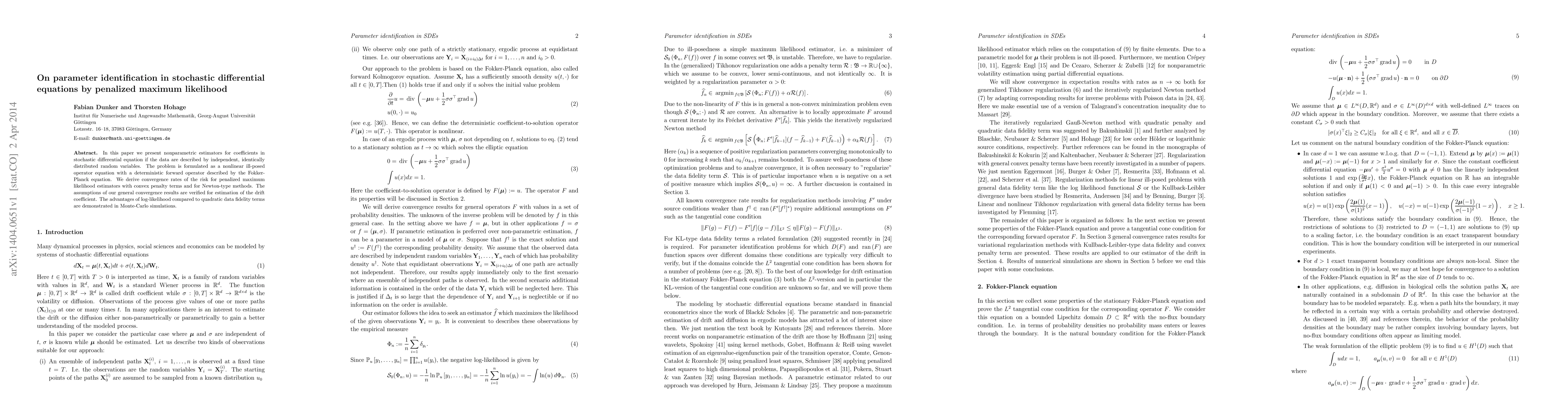 This study employs variational regularization methods using Kullback-Leibler-type data fidelity terms to estimate parameters in stochastic differential equations (SDEs). The approach is flexible and can be applied to various problems such as estimating volatility, initial conditions, or coefficients in boundary conditions.
