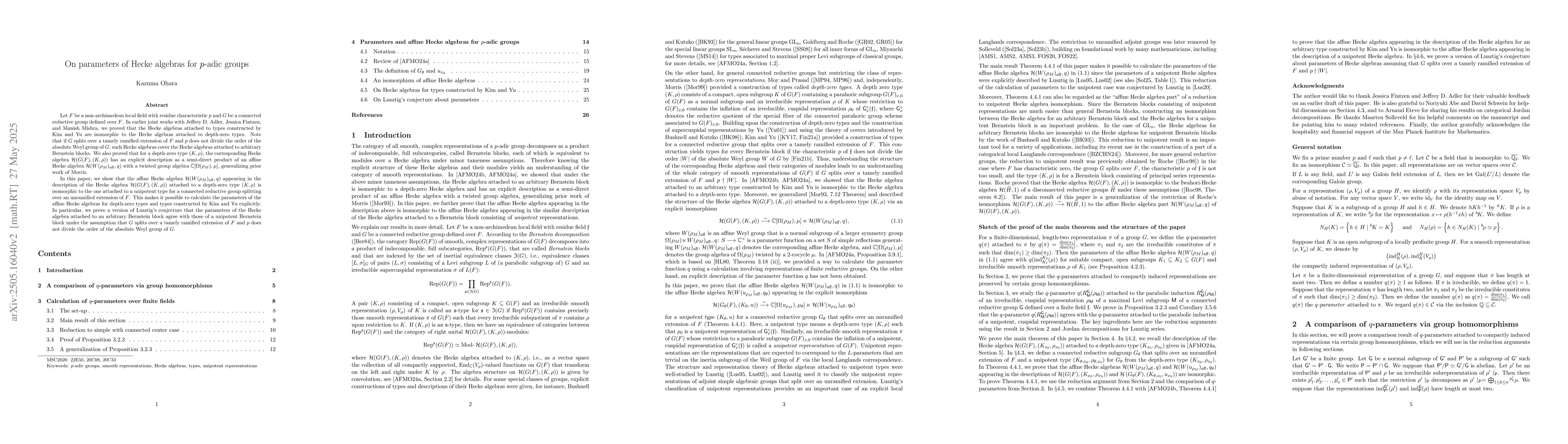 The research builds upon earlier joint works with Adler, Fintzen, and Mishra, utilizing Hecke algebras for types constructed by Kim and Yu, and comparing them to depth-zero types over non-archimedean local fields $F$ with residue characteristic $p$.