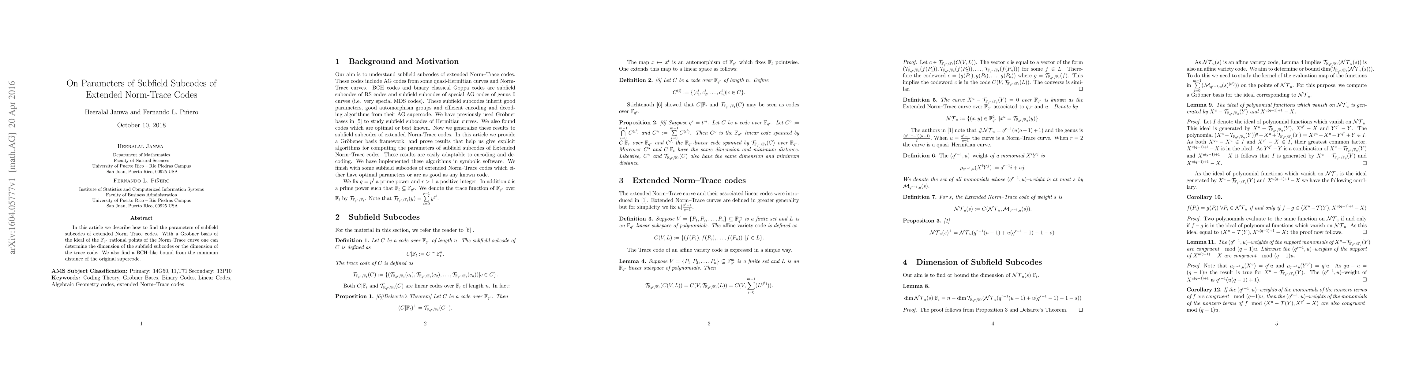 This paper presents a method to determine the parameters of subfield subcodes within extended Norm-Trace codes using Gröbner basis techniques. It also derives a BCH-like bound for the minimum distance based on the original supercode's properties.