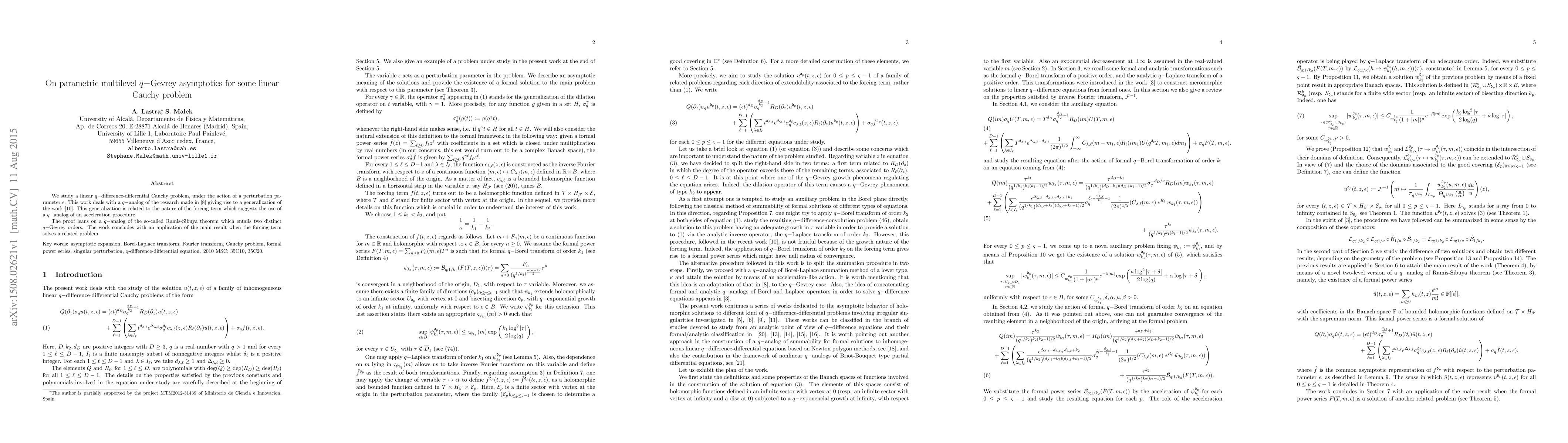This paper explores a linear $q-$difference-differential Cauchy problem with a perturbation parameter $\epsilon$, extending previous research using $q-$analogs. The study employs a $q-$analog of the Ramis-Sibuya theorem to derive two distinct $q-$Gevrey orders, concluding with an application to a related problem.