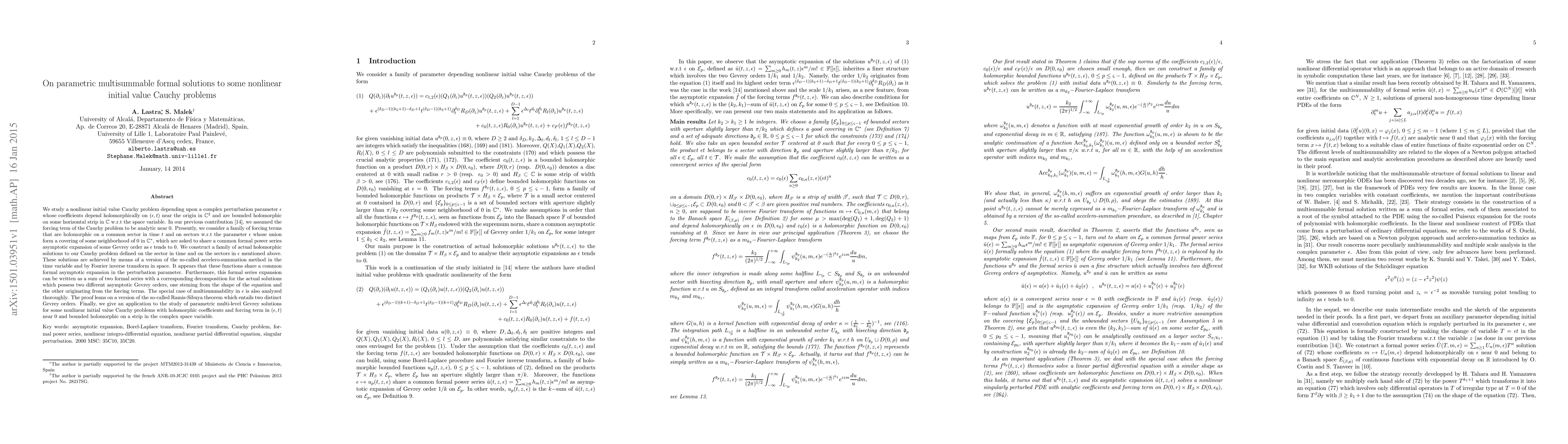 This paper investigates nonlinear initial value Cauchy problems with complex perturbation parameters, focusing on parametric multisummable formal solutions. It employs a version of the Ramis-Sibuya theorem to establish distinct Gevrey orders and applies the findings to study parametric multi-level Gevrey solutions.