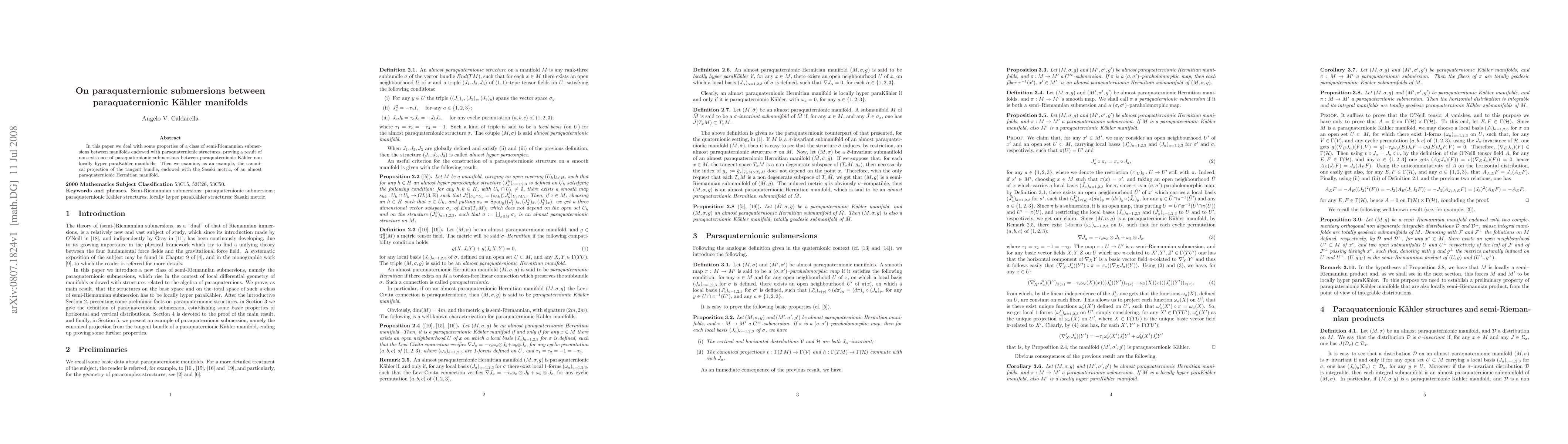 Summary: This paper investigates semi-Riemannian submersions in paraquaternionic structures, demonstrating the non-existence of such submersions between specific paraquaternionic Kähler manifolds, and analyzes the Sasaki metric on the tangent bundle of an almost paraquaternionic Hermitian manifold as an illustrative example.