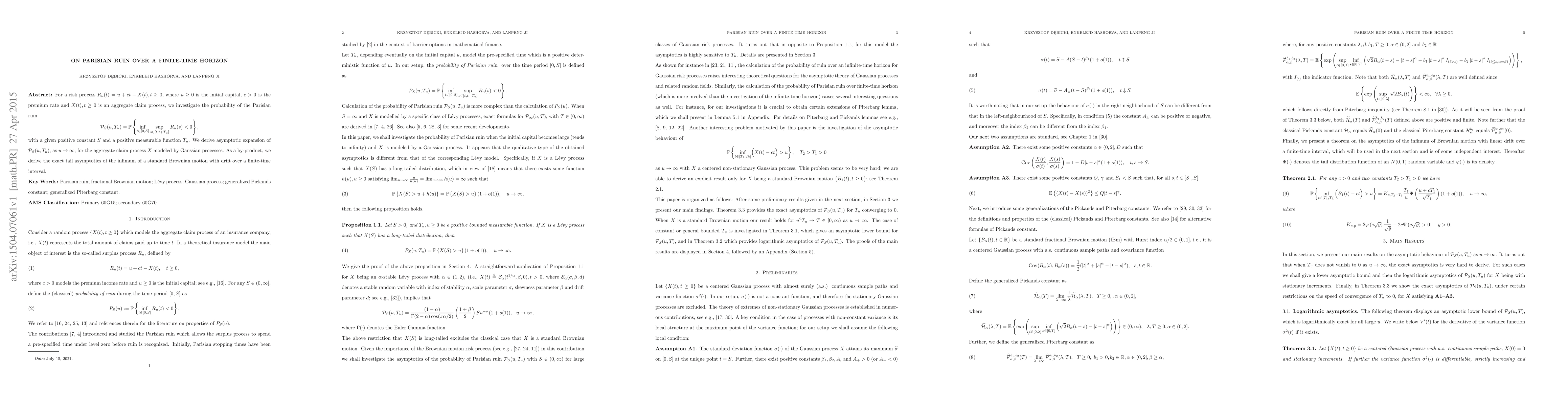 For a risk process $R_u(t)=u+ct-X(t), t\ge 0$, where $u\ge 0$ is the initial capital, $c>0$ is the premium rate and $X(t),t\ge 0$ is an aggregate claim process, we investigate the probability of the Parisian ruin \[ \mathcal{P}_S(u,T_u)=\mathbb{P}\{\inf_{t\in[0,S]} \sup_{s\in[t,t+T_u]} R_u(s)<0\}, \] with a given positive constant $S$ and a positive measurable function $T_u$. We derive asymptotic expansion of $\mathcal{P}_S(u,T_u)$, as $u\to\infty$, for the aggregate claim process $X$ modeled by Gaussian processes. As a by-product, we derive the exact tail asymptotics of the infimum of a standard Brownian motion with drift over a finite-time interval.