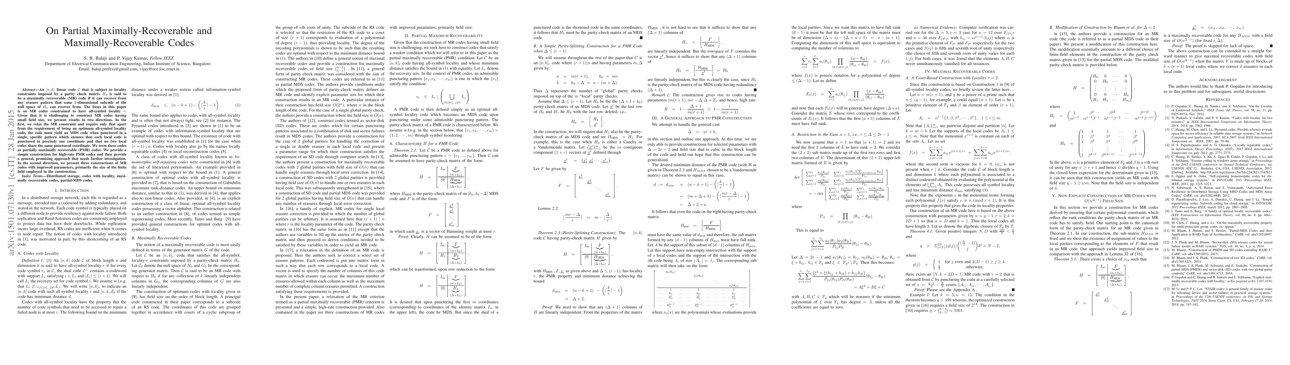 An [n, k] linear code C that is subject to locality constraints imposed by a parity check matrix H0 is said to be a maximally recoverable (MR) code if it can recover from any erasure pattern that some k-dimensional subcode of the null space of H0 can recover from. The focus in this paper is on MR codes constrained to have all-symbol locality r. Given that it is challenging to construct MR codes having small field size, we present results in two directions. In the first, we relax the MR constraint and require only that apart from the requirement of being an optimum all-symbol locality code, the code must yield an MDS code when punctured in a single, specific pattern which ensures that each local code is punctured in precisely one coordinate and that no two local codes share the same punctured coordinate. We term these codes as partially maximally recoverable (PMR) codes. We provide a simple construction for high-rate PMR codes and then provide a general, promising approach that needs further investigation. In the second direction, we present three constructions of MR codes with improved parameters, primarily the size of the finite field employed in the construction