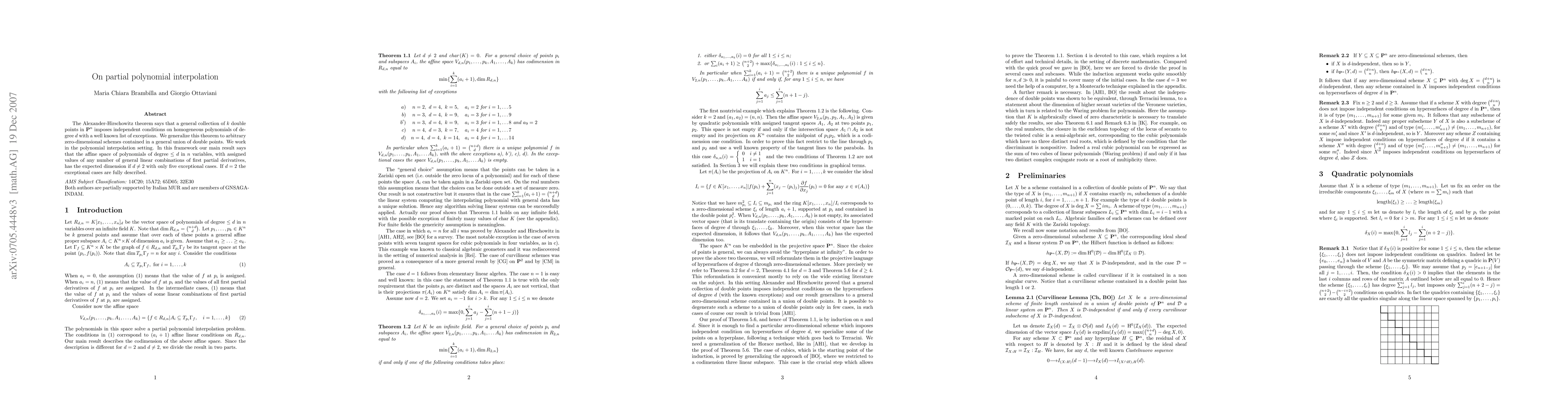 The Alexander-Hirschowitz theorem says that a general collection of $k$ double points in ${\bf P}^n$ imposes independent conditions on homogeneous polynomials of degree $d$ with a well known list of exceptions. We generalize this theorem to arbitrary zero-dimensional schemes contained in a general union of double points. We work in the polynomial interpolation setting. In this framework our main result says that the affine space of polynomials of degree $\le d$ in $n$ variables, with assigned values of any number of general linear combinations of first partial derivatives, has the expected dimension if $d\neq 2$ with only five exceptional cases. If $d=2$ the exceptional cases are fully described.