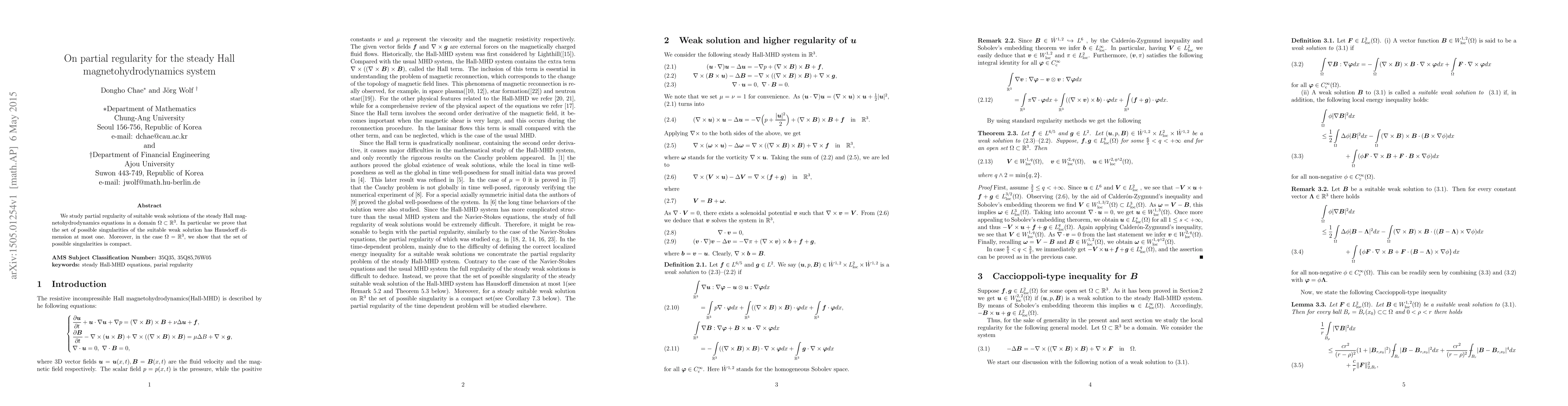 This paper investigates the partial regularity of weak solutions to the steady Hall magnetohydrodynamics equations, proving that singularities have a Hausdorff dimension of at most one and are compact when the domain is $\Bbb R^3$.