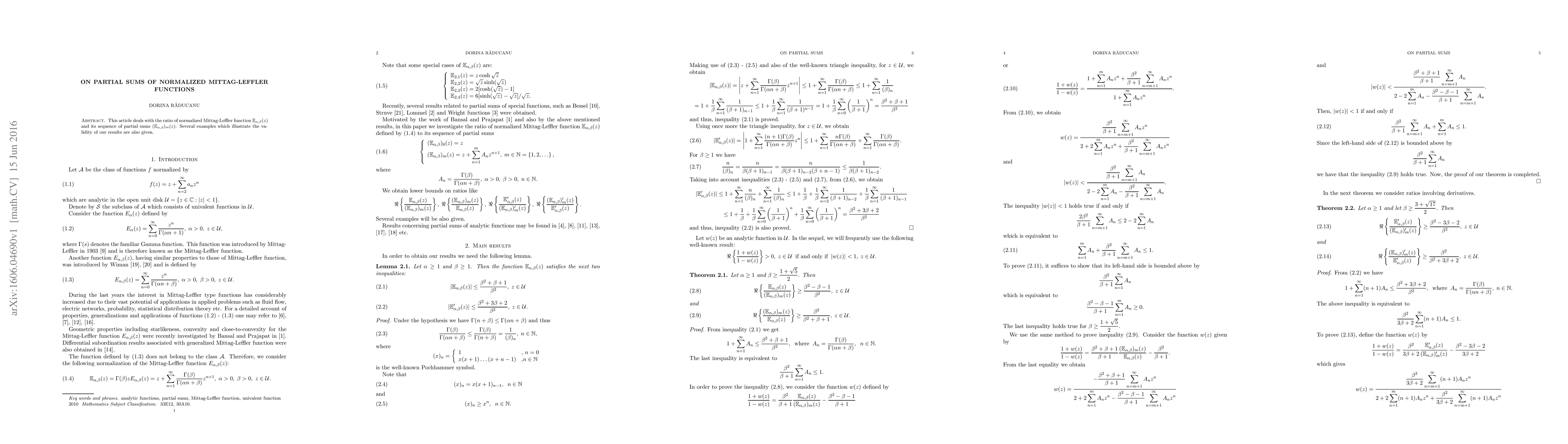 This paper investigates the ratio between the normalized Mittag-Leffler function $\mathbb{E}_{\alpha,\beta}(z)$ and its partial sums $(\mathbb{E}_{\alpha,\beta})_m(z)$, providing examples to validate the findings.
