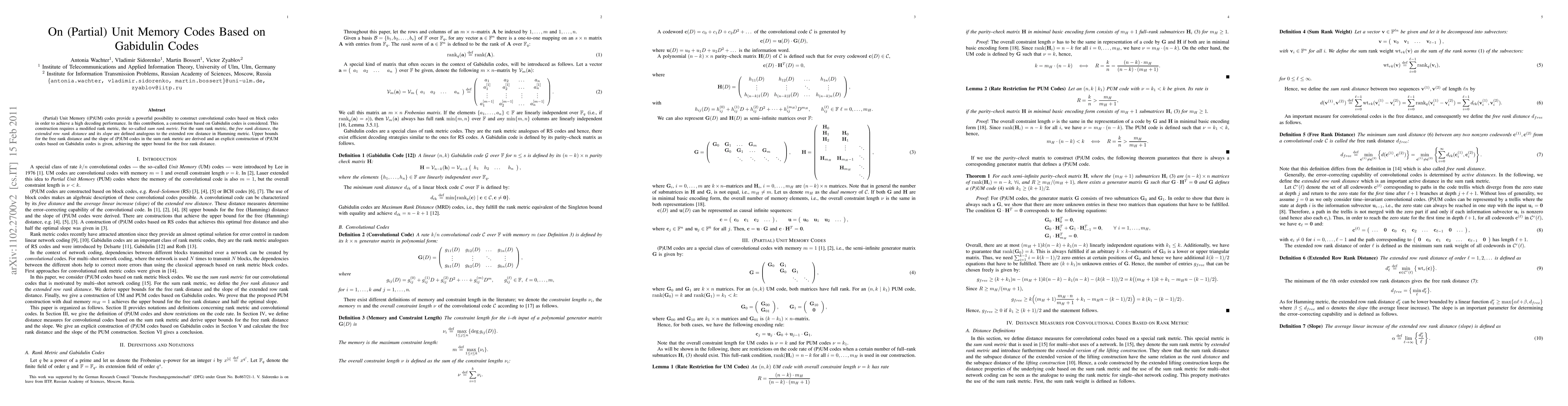 Researchers develop a new method to construct powerful error-correcting codes called (Partial) Unit Memory ((P)UM) codes, using Gabidulin codes as a basis. The discovery provides an upper bound for the performance of these codes in certain decoding scenarios.