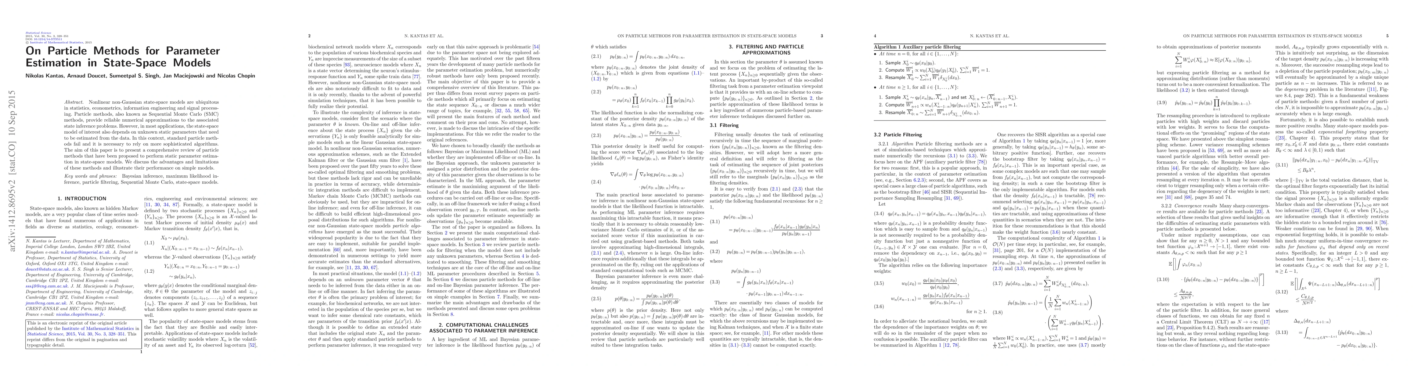This paper reviews advanced particle methods, or Sequential Monte Carlo techniques, for estimating static parameters in nonlinear non-Gaussian state-space models, highlighting their advantages, limitations, and performance through simple model examples.