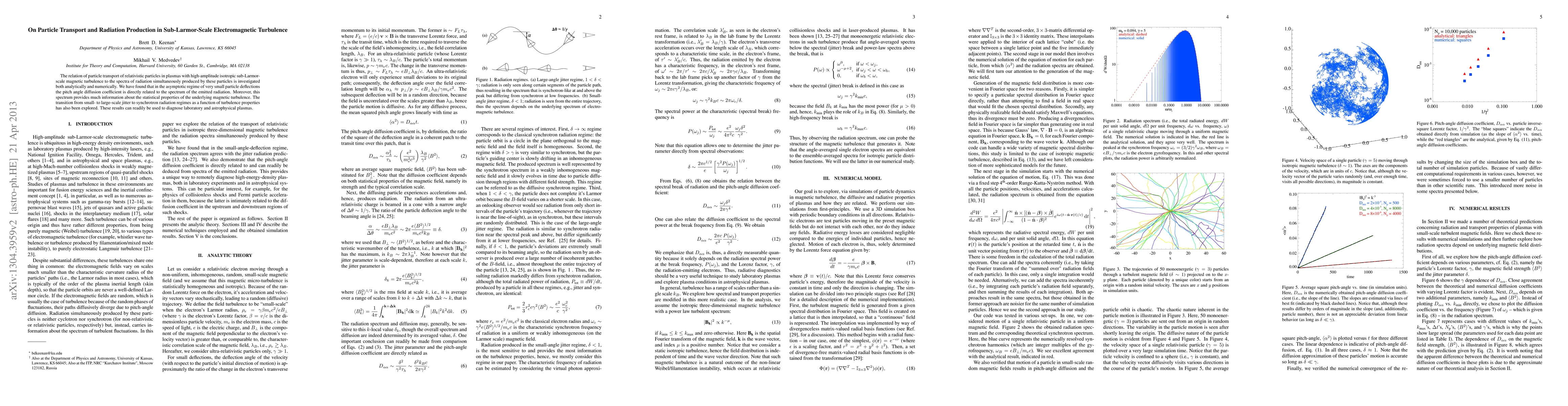 This paper investigates the relationship between relativistic particle transport in plasmas with sub-Larmor-scale magnetic turbulence and the radiation spectra produced by these particles. It reveals that the pitch angle diffusion coefficient correlates with the emitted radiation spectrum, providing insights into the turbulence's statistical properties.
