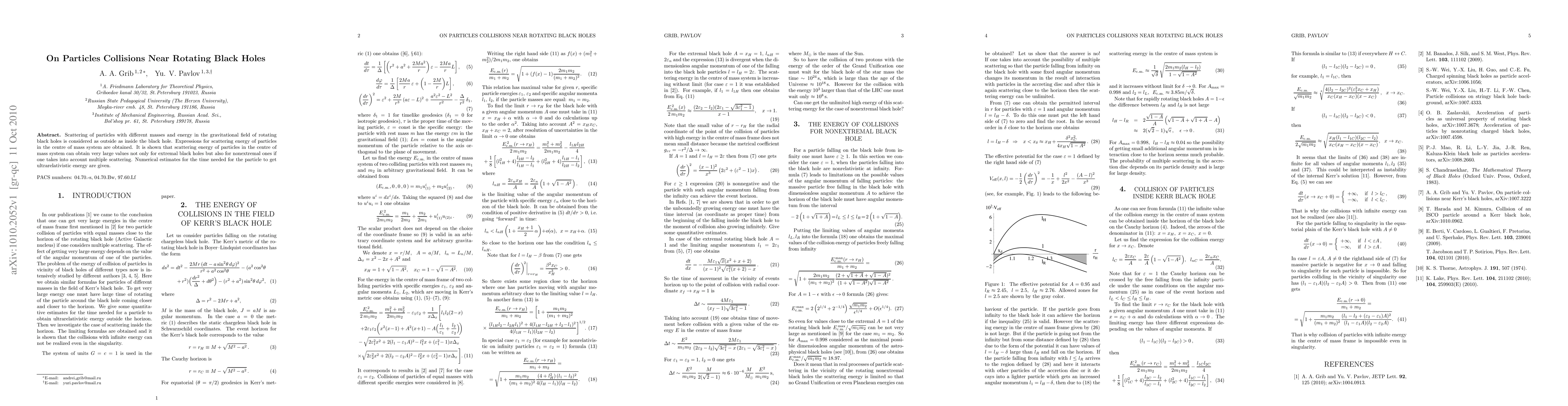 Scattering of particles with different masses and energy in the gravitational field of rotating black holes is considered as outside as inside the black hole. Expressions for scattering energy of particles in the centre of mass system are obtained. It is shown that scattering energy of particles in the centre of mass system can obtain very large values not only for extremal black holes but also for nonextremal ones if one takes into account multiple scattering. Numerical estimates for the time needed for the particle to get ultrarelativistic energy are given.