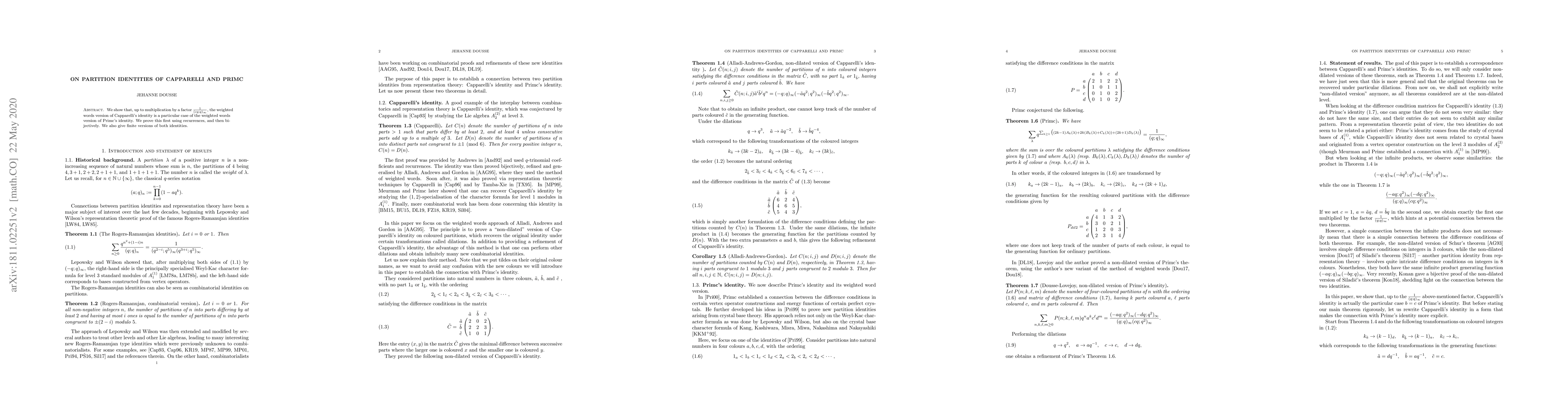 This paper demonstrates that Capparelli's identity is a special case of Primc's identity, up to a factor, using recurrence relations and bijective proofs. It also provides finite versions of both identities.