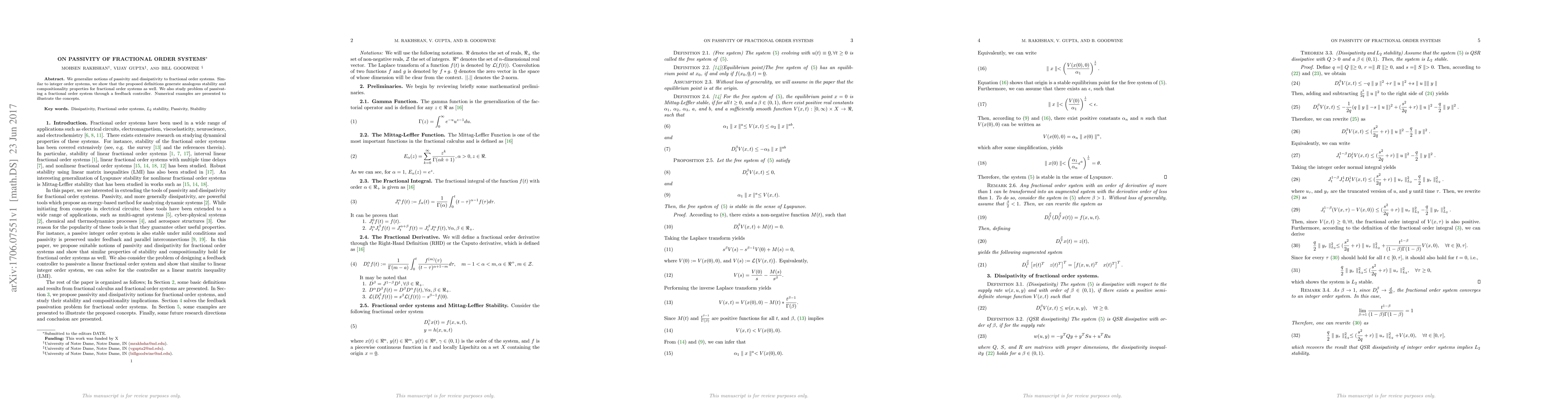 We generalize notions of passivity and dissipativity to fractional order systems. Similar to integer order systems, we show that the proposed definitions generate analogous stability and compositionality properties for fractional order systems as well. We also study the problem of passivating a fractional order system through a feedback controller. Numerical examples are presented to illustrate the concepts.