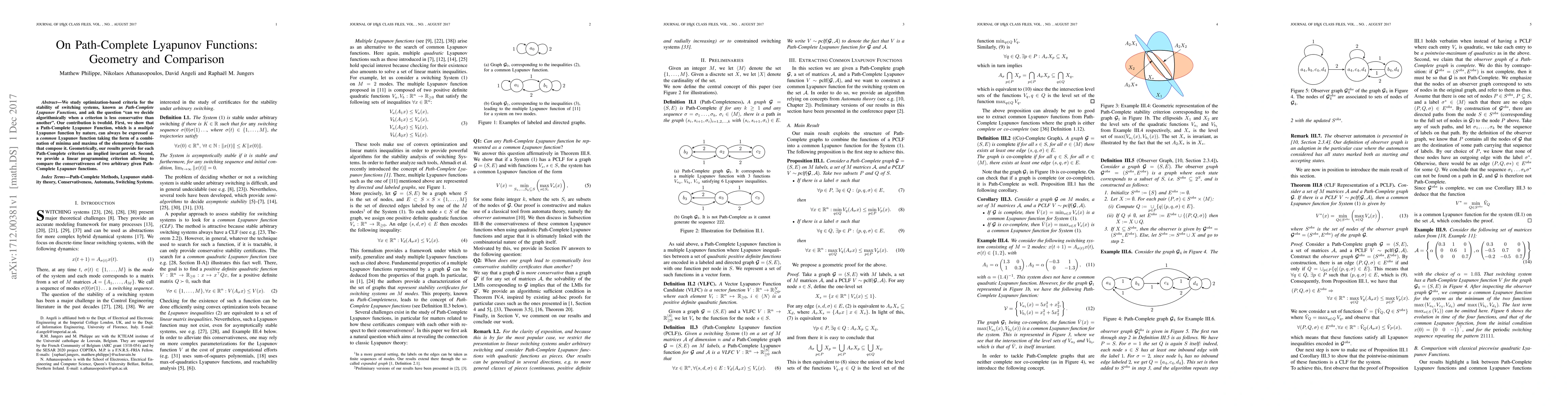 This paper explores optimization criteria for stability in switching systems using Path-Complete Lyapunov Functions, demonstrating their geometric representation as a combination of minima and maxima. It also introduces a linear programming method to compare the conservativeness of different Path-Complete Lyapunov Functions.