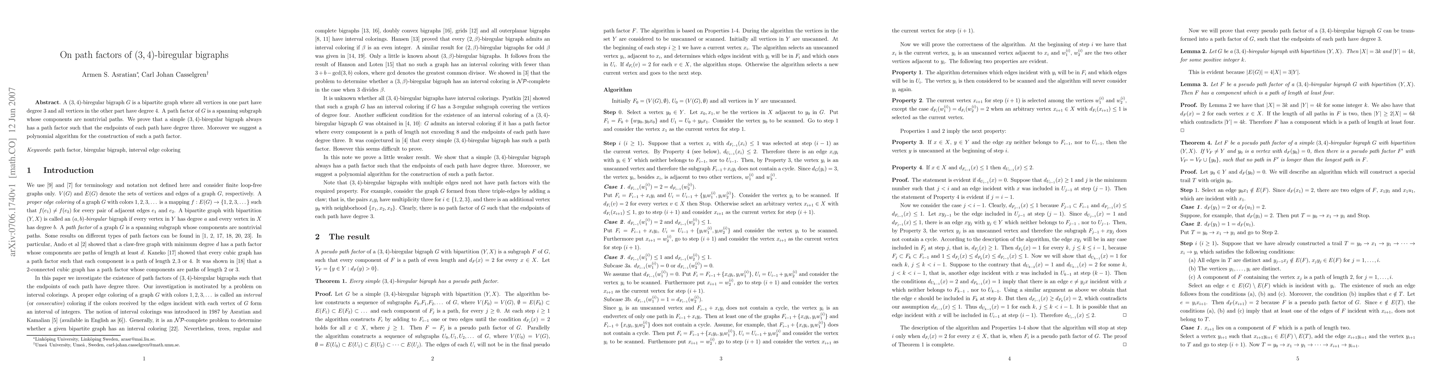 A (3,4)-biregular bigraph G is a bipartite graph where all vertices in one part have degree 3 and all vertices in the other part have degree 4. A path factor of G is a spanning subgraph whose components are nontrivial paths. We prove that a simple (3,4)-biregular bigraph always has a path factor such that the endpoints of each path have degree three. Moreover we suggest a polynomial algorithm for the construction of such a path factor.