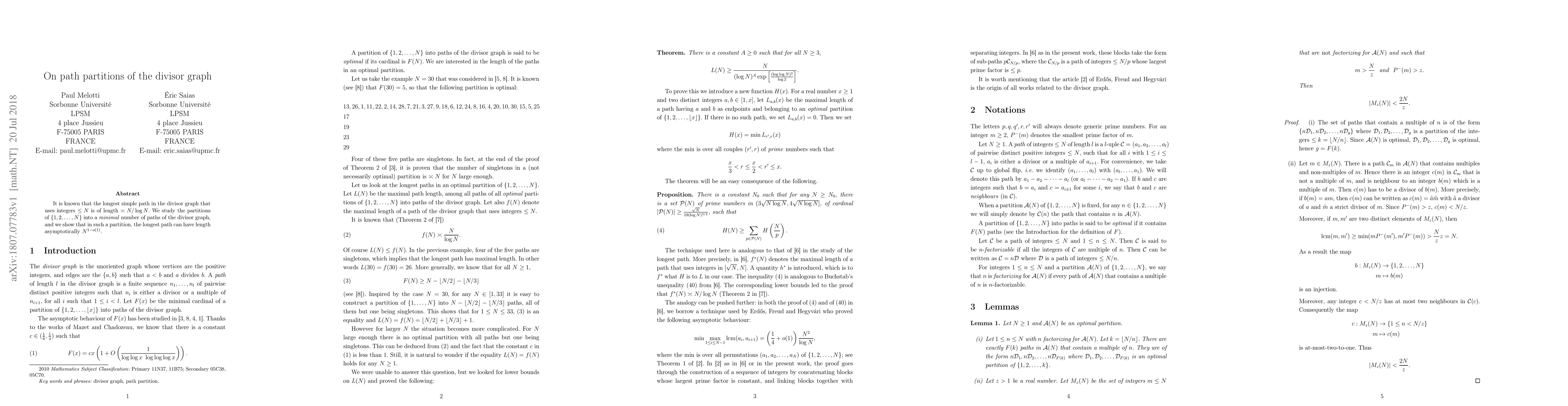 This paper investigates the partitioning of integers $\{1, 2, \dots, N\}$ into the fewest number of paths in the divisor graph, demonstrating that the longest path in such a partition has a length asymptotically of $N^{1-o(1)}$.
