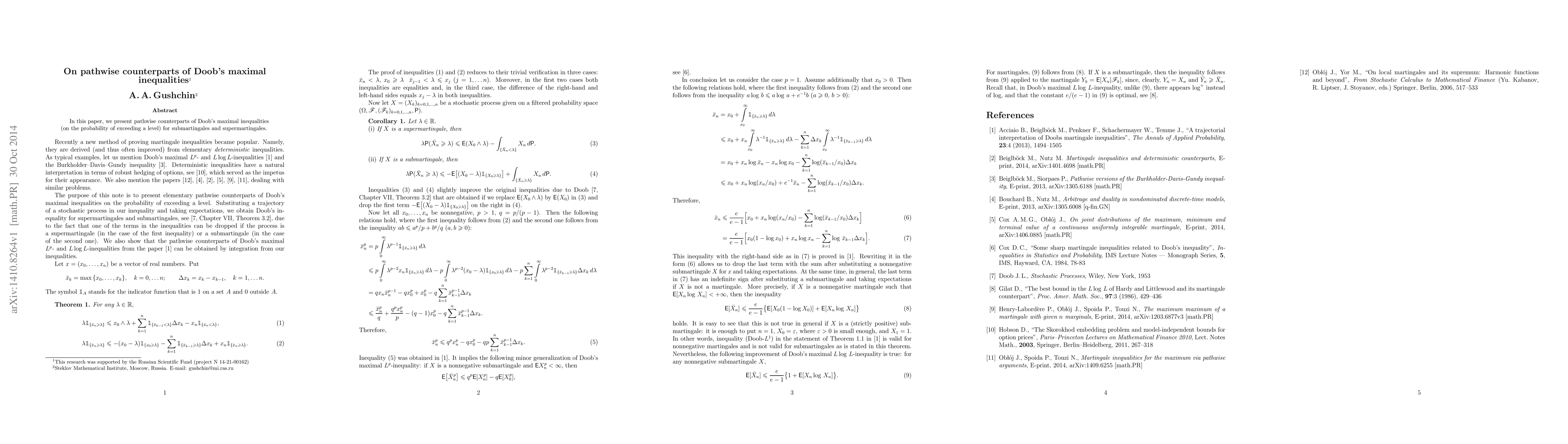 This paper introduces pathwise versions of Doob's maximal inequalities for submartingales and supermartingales, focusing on the probability of exceeding a certain level. The results provide new insights into the behavior of these stochastic processes.