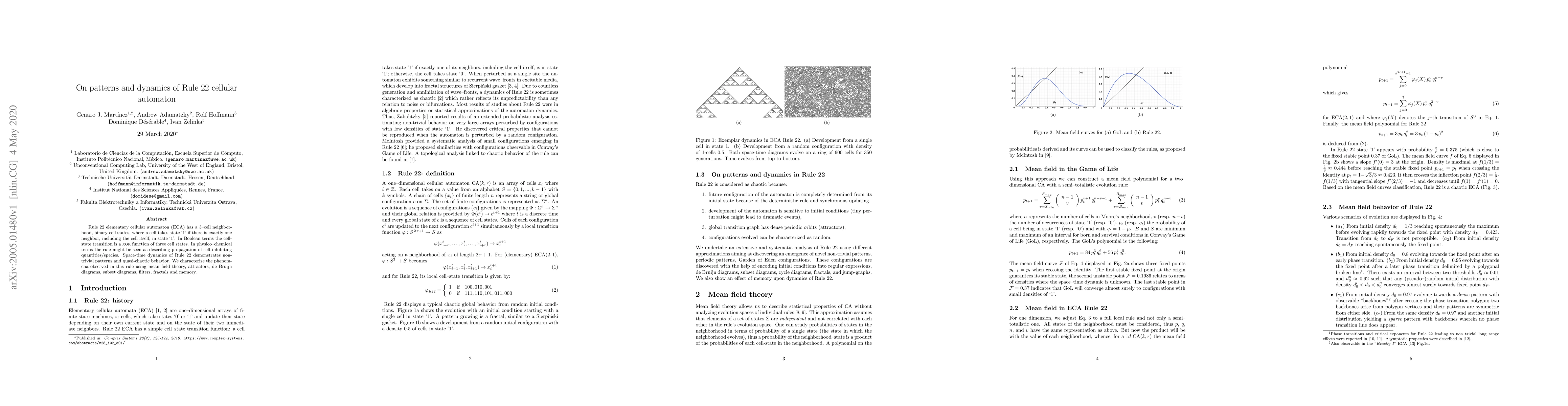 The Rule 22 cellular automaton exhibits non-trivial patterns and quasi-chaotic behavior, with phenomena characterized using mean field theory, attractors, and fractals.