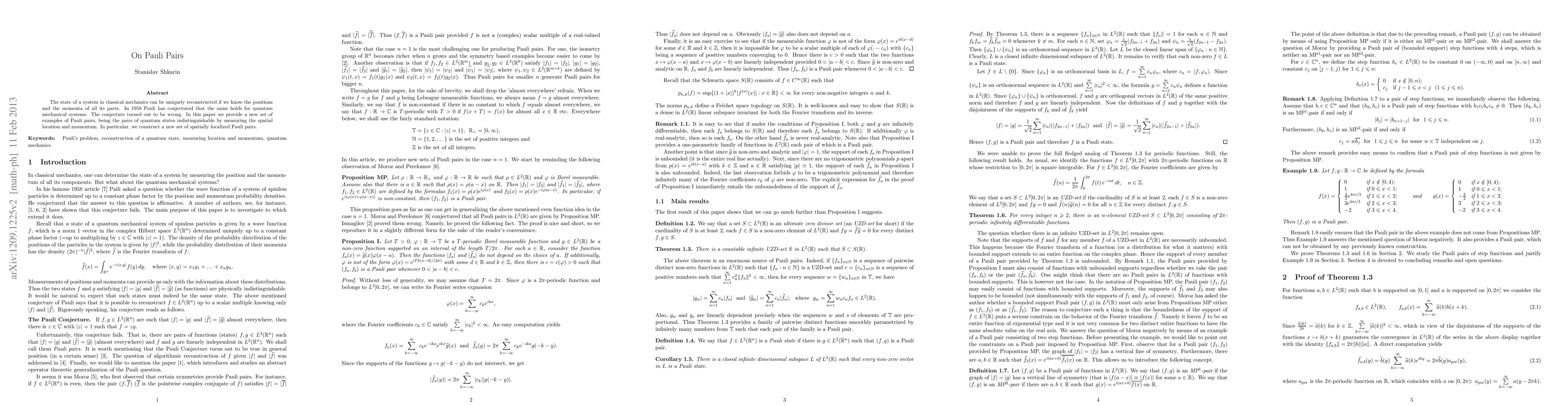 This paper refutes Pauli's 1958 conjecture that quantum systems can be reconstructed by measuring positions and momenta, presenting new examples of Pauli pairs—indistinguishable quantum states by spatial and momentum measurements. It also introduces a new set of spatially localized Pauli pairs.