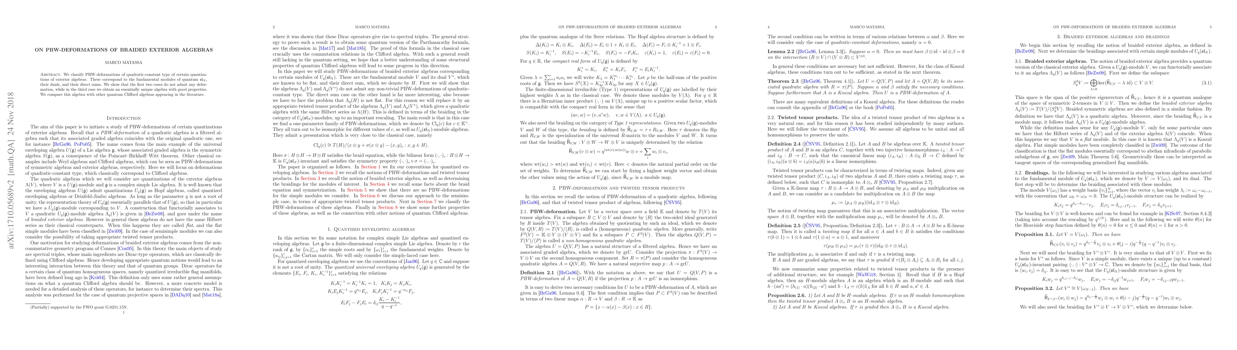 This research classifies PBW-deformations of exterior algebras, finding no deformations for fundamental modules and their duals, but an essentially unique algebra for their direct sums. The unique algebra is compared with other quantum Clifford algebras.