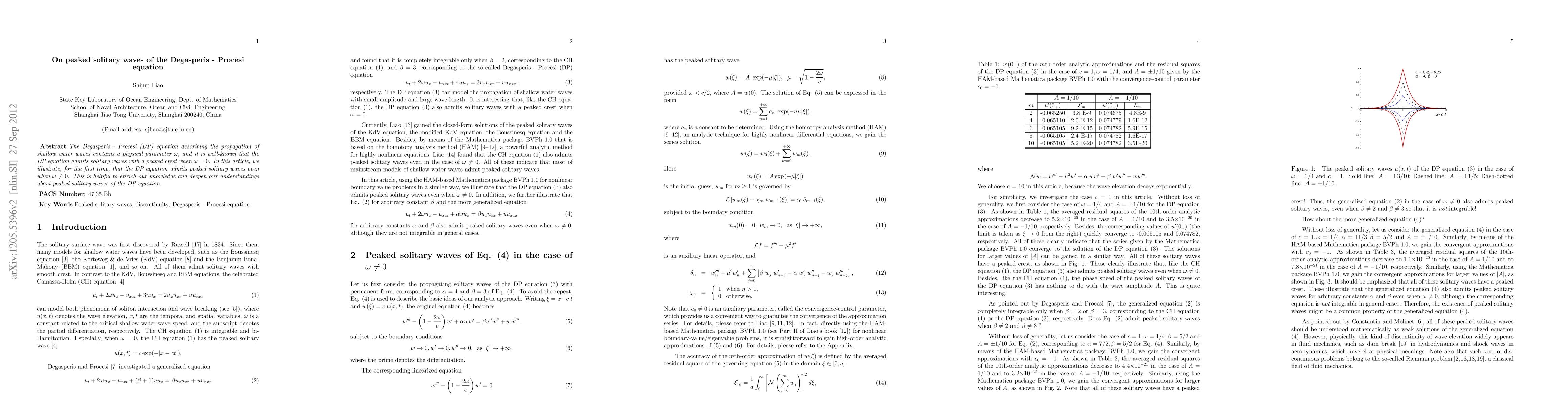 This paper demonstrates that the Degasperis-Procesi (DP) equation supports peaked solitary waves even when the parameter $\omega \neq 0$, expanding our understanding of such wave phenomena in shallow water dynamics.