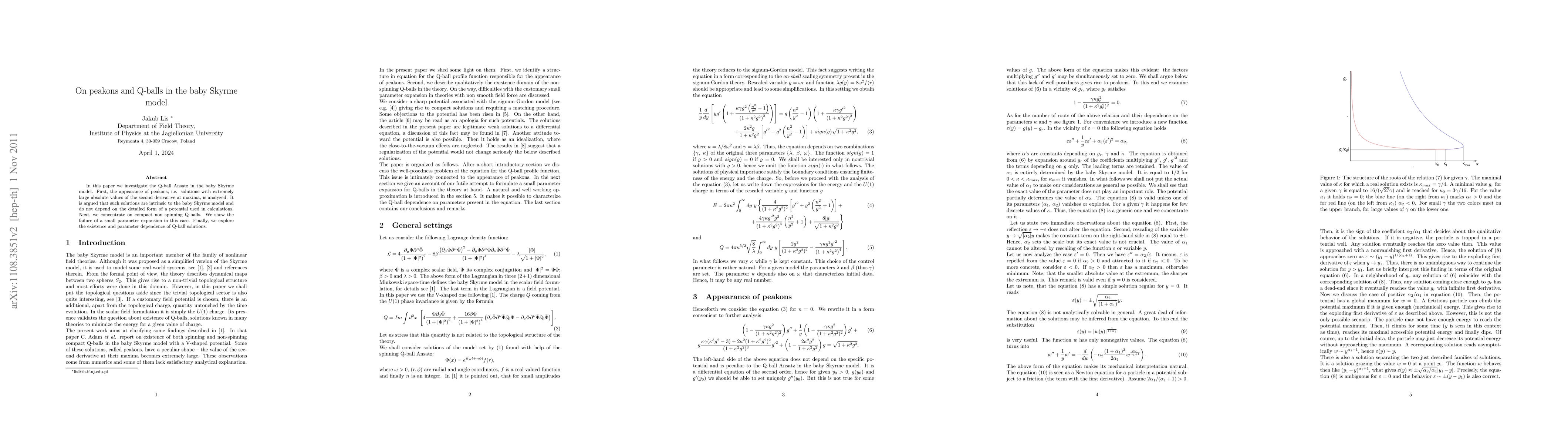 In this paper we investigate the Q-ball Ansatz in the baby Skyrme model. First, the appearance of peakons, i.e. solutions with extremely large absolute values of the second derivative at maxima, is analyzed. It is argued that such solutions are intrinsic to the baby Skyrme model and do not depend on the detailed form of a potential used in calculations. Next, we concentrate on compact non spinning Q-balls. We show the failure of a small parameter expansion in this case. Finally, we explore the existence and parameter dependence of Q-ball solutions.