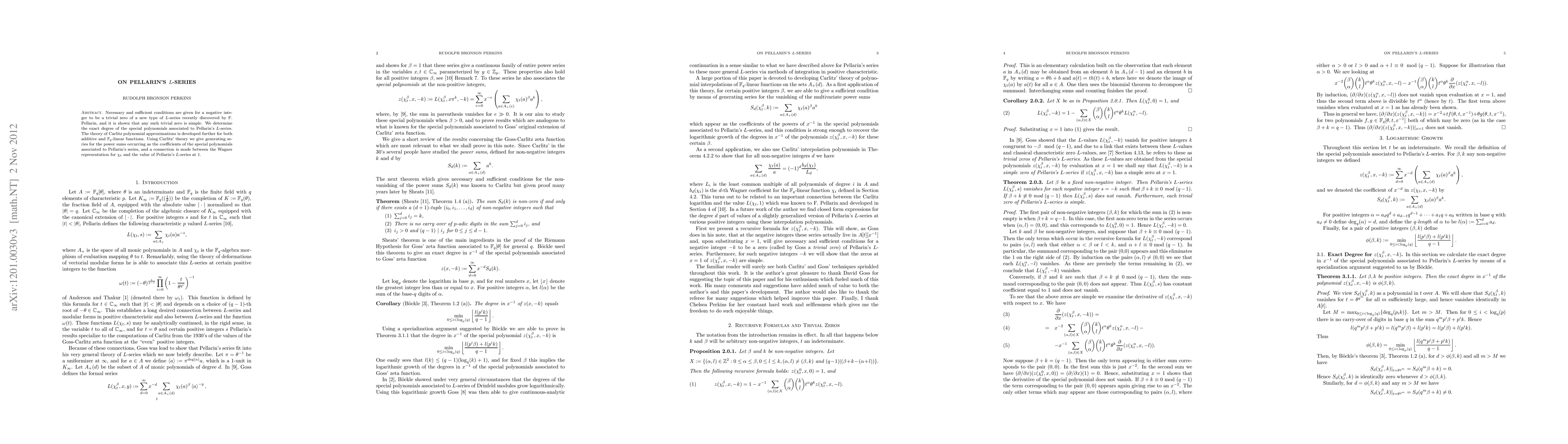 This paper provides necessary and sufficient conditions for negative integers to be trivial zeros of Pellarin's $L$-series, demonstrating that any such zero is simple. It also determines the degree of special polynomials linked to Pellarin's series and extends Carlitz's polynomial approximation theory to generate series for power sums.