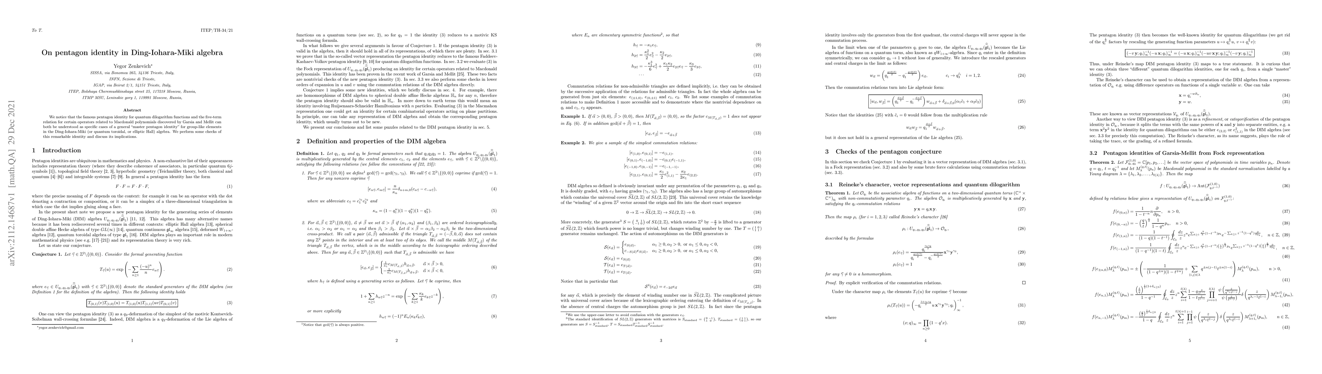 This paper establishes a "master pentagon identity" for group-like elements in the Ding-Iohara-Miki algebra, encompassing the pentagon identity for quantum dilogarithm functions and the five-term relation for Macdonald polynomials, and explores its implications.
