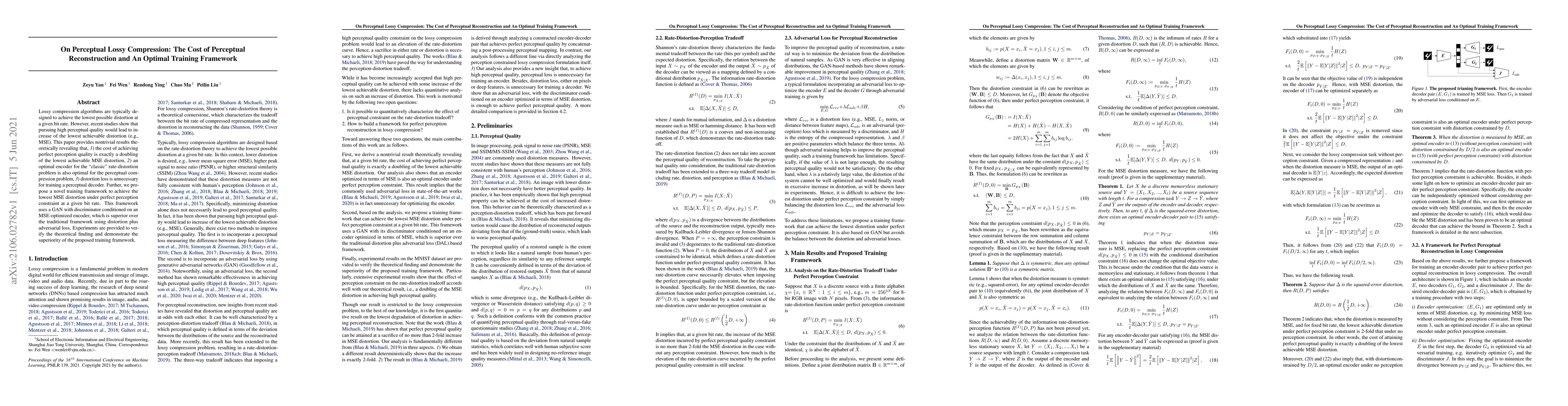 This paper presents theoretical insights into perceptual lossy compression, showing that perfect perceptual quality doubles the lowest achievable MSE distortion. It proposes an optimal training framework using a GAN with a conditioned discriminator, which outperforms traditional methods and achieves lower MSE distortion under perceptual constraints.