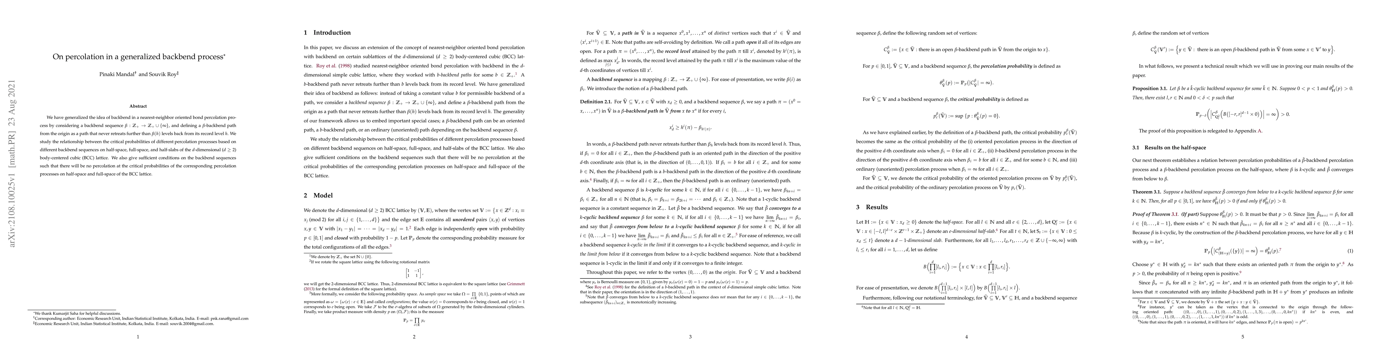 We have generalized the idea of backbend in a nearest-neighbor oriented bond percolation process by considering a backbend sequence $\beta : \mathbb{Z}_+ \to \mathbb{Z}_+ \cup \{\infty\}$, and defining a $\beta$-backbend path from the origin as a path that never retreats further than $\beta(h)$ levels back from its record level $h$. We study the relationship between the critical probabilities of different percolation processes based on different backbend sequences on half-space, full-space, and half-slabs of the $d$-dimensional ($d \geq 2$) body-centered cubic (BCC) lattice. We also give sufficient conditions on the backbend sequences such that there will be no percolation at the critical probabilities of the corresponding percolation processes on half-space and full-space of the BCC lattice.