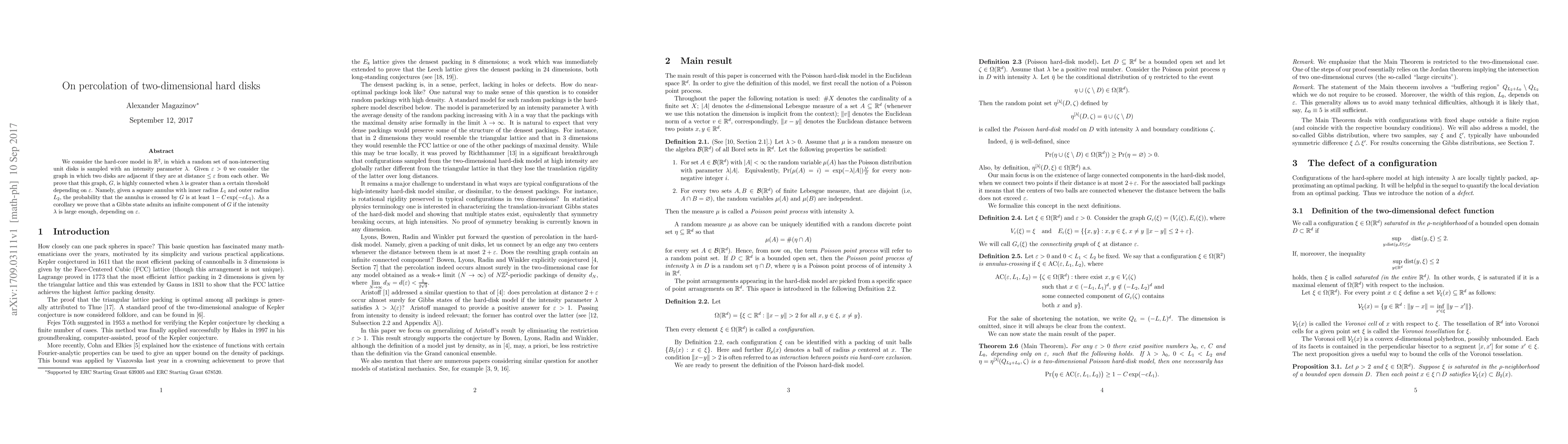 A research paper investigates how densely packed two-dimensional hard disks (disks with a radius of 1 unit) cover a square area, finding that they tend to form highly connected graphs when the disk density is above a certain threshold. The findings have implications for understanding complex systems and phase transitions.