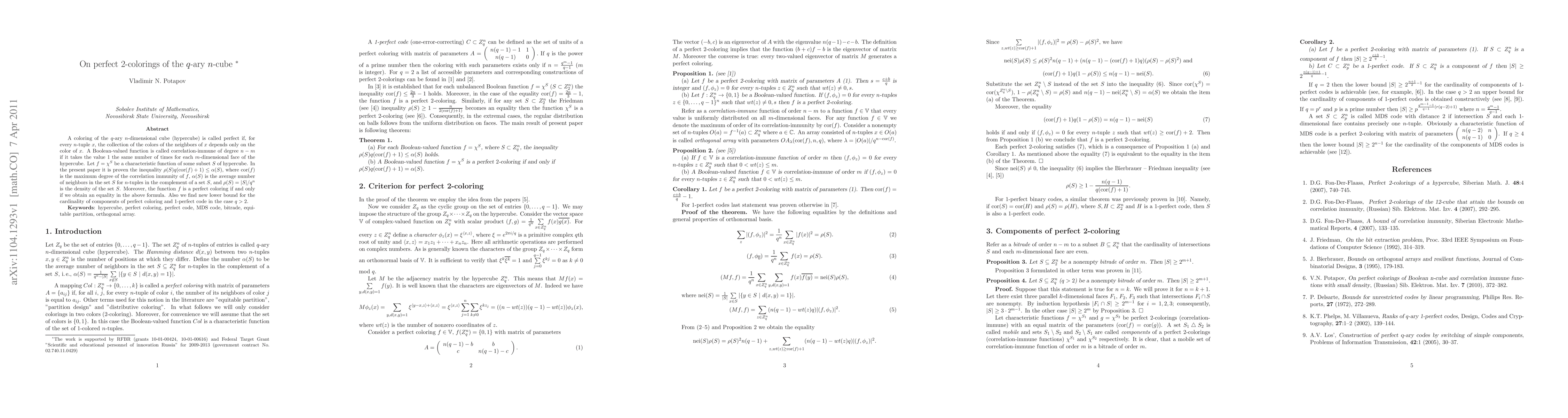 Researchers prove a new inequality for perfect 2-colorings of the q-ary n-cube, establishing conditions under which a coloring is perfect and discovering a lower bound for components in such colorings.