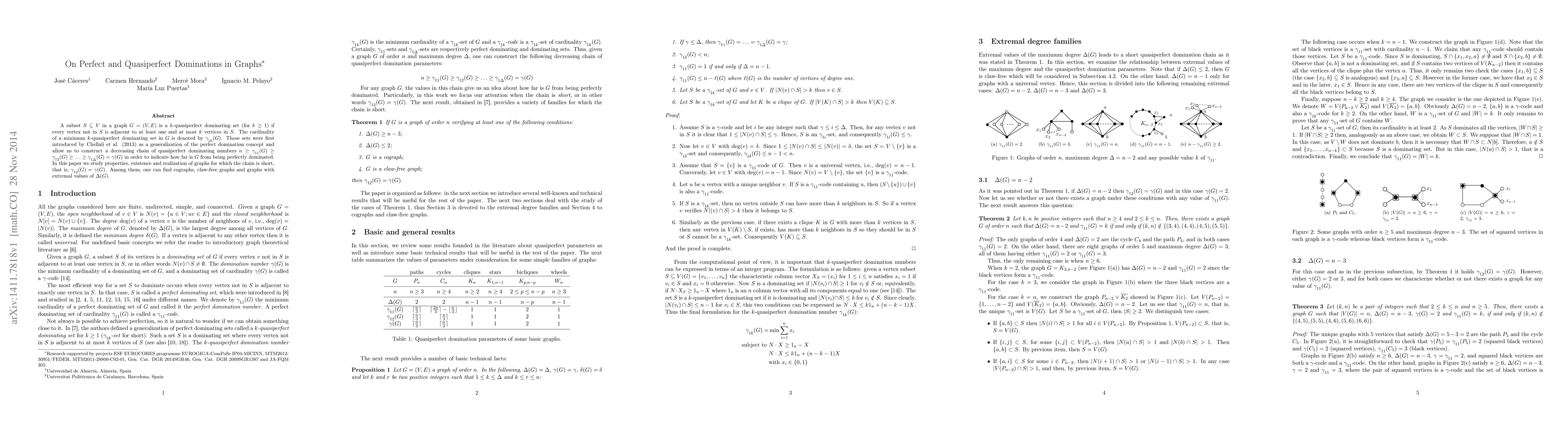 This paper explores the concept of k-quasiperfect dominating sets in graphs, introduced as a generalization of perfect domination. It focuses on graphs where the quasiperfect dominating numbers chain is short, specifically when the second number equals the standard domination number, $gamma_{12}(G) = gamma(G)$. The study identifies cographs, claw-free graphs, and graphs with extremal values of $Delta(G)$ as examples fitting this criterion.