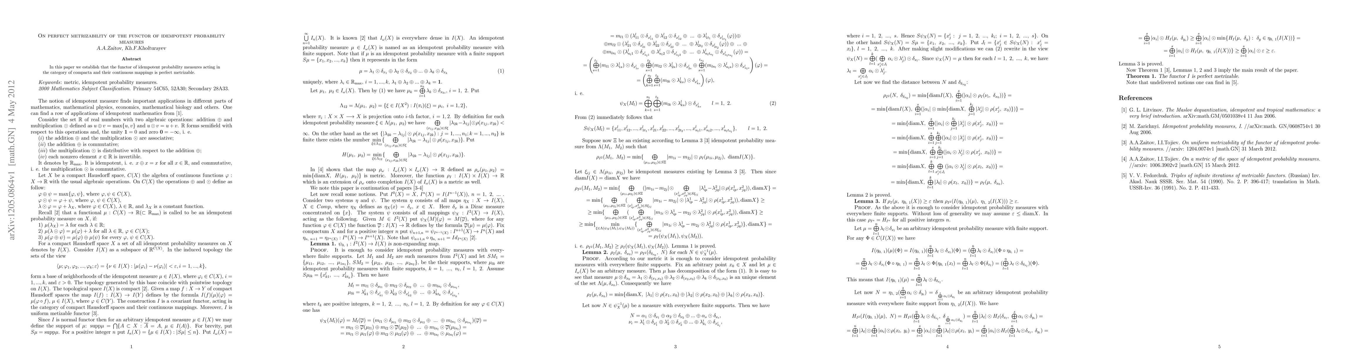 Summary: This paper demonstrates that the functor representing idempotent probability measures is perfectly metrizable within the category of compact spaces and continuous mappings. Perfect metrizability provides a strong topological structure for this functor.