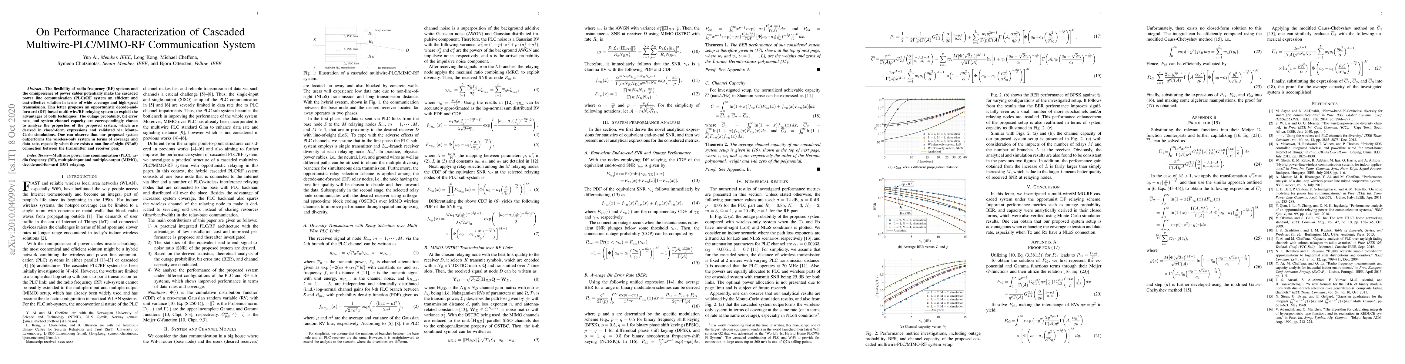 The flexibility of radio frequency (RF) systems and the omnipresence of power cables potentially make the cascaded power line communication (PLC)/RF system an efficient and cost-effective solution in terms of wide coverage and high-speed transmission. This letter proposes an opportunistic decode-and-forward (DF)-based multi-wire/RF relaying system to exploit the advantages of both techniques. The outage probability, bit error rate, and system channel capacity are correspondingly chosen to analyze the properties of the proposed system, which are derived in closed-form expressions and validated via Monte-Carlo simulations. One can observe that our proposed system outperforms the wireless-only system in terms of coverage and data rate, especially when there exists a non-line-of-sight (NLoS) connection between the transmitter and receiver pair.