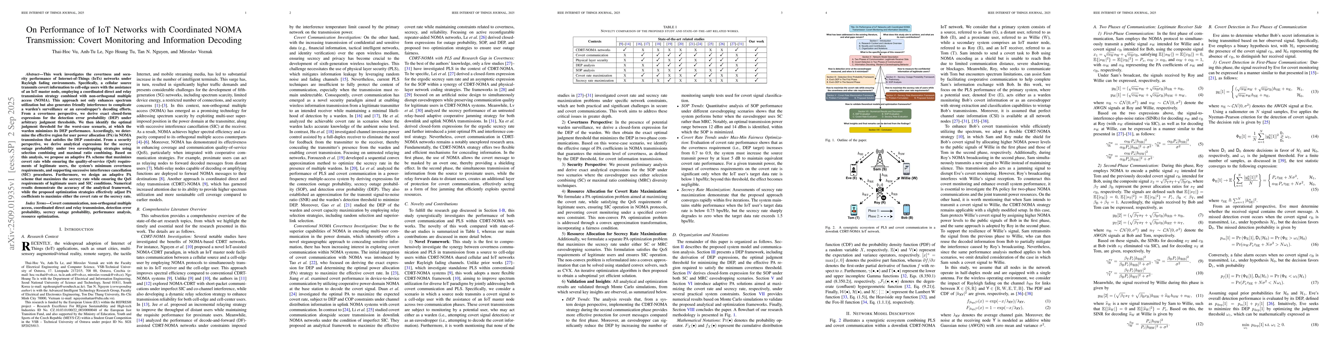 This work investigates the covertness and security performance of Internet-of-Things (IoTs) networks under Rayleigh fading environments. Specifically, a cellular source transmits covert information to cell-edge users with the assistance of an IoT master node, employing a coordinated direct and relay transmission strategy combined with non-orthogonal multiple access (NOMA). This approach not only enhances spectrum utilization but also generates friendly interference to complicate a warden's surveillance or an eavesdropper's decoding efforts. From a covertness perspective, we derive exact closed-form expressions for the detection error probability (DEP) under arbitrary judgment thresholds. We then identify the optimal judgment threshold for the worst-case scenario, at which the warden minimizes its DEP performance. Accordingly, we determine the effective region for user power allocation (PA) in NOMA transmission that satisfies the DEP constraint. From a security perspective, we derive analytical expressions for the secrecy outage probability under two eavesdropping strategies using selection combining and maximal ratio combining. Based on this analysis, we propose an adaptive PA scheme that maximizes covert rate while ensuring the quality-of-service (QoS) requirements of legitimate users, the system's minimum covertness requirements, and supporting successive interference cancellation (SIC) procedures. Furthermore, we design an adaptive PA scheme that maximizes the secrecy rate while ensuring the QoS requirements of legitimate users and SIC conditions. Numerical results demonstrate the accuracy of the analytical framework, while the proposed optimization strategies effectively adjust PA coefficients to maximize either the covert rate or the secrecy rate.