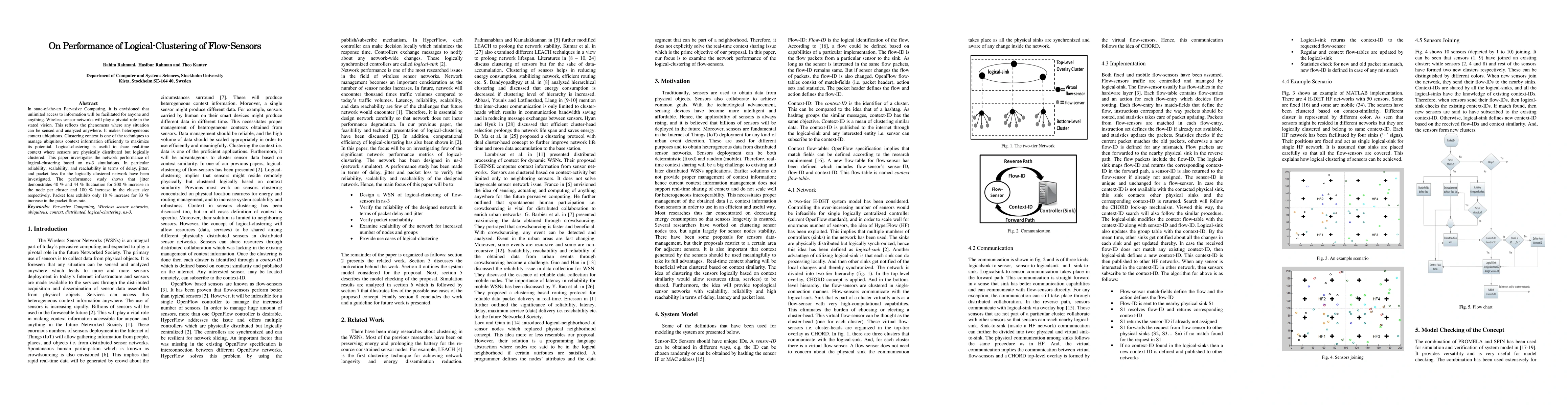 In state-of-the-art Pervasive Computing, it is envisioned that unlimited access to information will be facilitated for anyone and anything. Wireless sensor networks will play a pivotal role in the stated vision. This reflects the phenomena where any situation can be sensed and analyzed anywhere. It makes heterogeneous context ubiquitous. Clustering context is one of the techniques to manage ubiquitous context information efficiently to maximize its potential. Logical-clustering is useful to share real-time context where sensors are physically distributed but logically clustered. This paper investigates the network performance of logical-clustering based on ns-3 simulations. In particular reliability, scalability, and reachability in terms of delay, jitter, and packet loss for the logically clustered network have been investigated. The performance study shows that jitter demonstrates 40 % and 44 % fluctuation for 200 % increase in the node per cluster and 100 % increase in the cluster size respectively. Packet loss exhibits only 18 % increase for 83 % increase in the packet flow-rate.