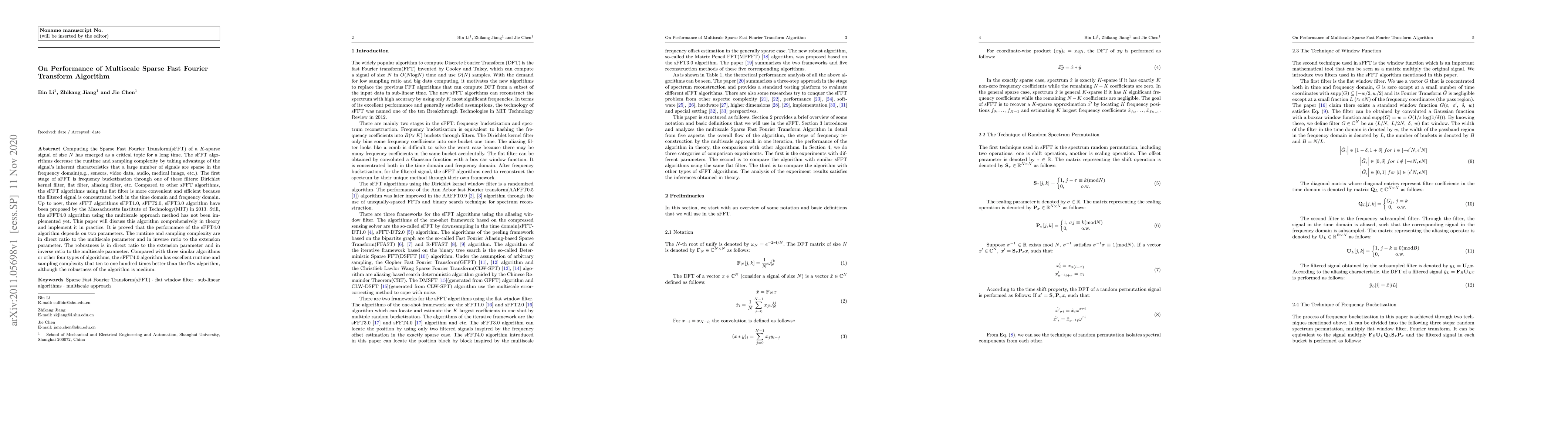 Computing the Sparse Fast Fourier Transform(sFFT) of a K-sparse signal of size N has emerged as a critical topic for a long time. The sFFT algorithms decrease the runtime and sampling complexity by taking advantage of the signal inherent characteristics that a large number of signals are sparse in the frequency domain(e.g., sensors, video data, audio, medical image, etc.). The first stage of sFFT is frequency bucketization through one of these filters: Dirichlet kernel filter, flat filter, aliasing filter, etc. Compared to other sFFT algorithms, the sFFT algorithms using the flat filter is more convenient and efficient because the filtered signal is concentrated both in the time domain and frequency domain. Up to now, three sFFT algorithms sFFT1.0, sFFT2.0, sFFT3.0 algorithm have been proposed by the Massachusetts Institute of Technology(MIT) in 2013. Still, the sFFT4.0 algorithm using the multiscale approach method has not been implemented yet. This paper will discuss this algorithm comprehensively in theory and implement it in practice. It is proved that the performance of the sFFT4.0 algorithm depends on two parameters. The runtime and sampling complexity are in direct ratio to the multiscale parameter and in inverse ratio to the extension parameter. The robustness is in direct ratio to the extension parameter and in inverse ratio to the multiscale parameter. Compared with three similar algorithms or other four types of algorithms, the sFFT4.0 algorithm has excellent runtime and sampling complexity that ten to one hundred times better than the fftw algorithm, although the robustness of the algorithm is medium.