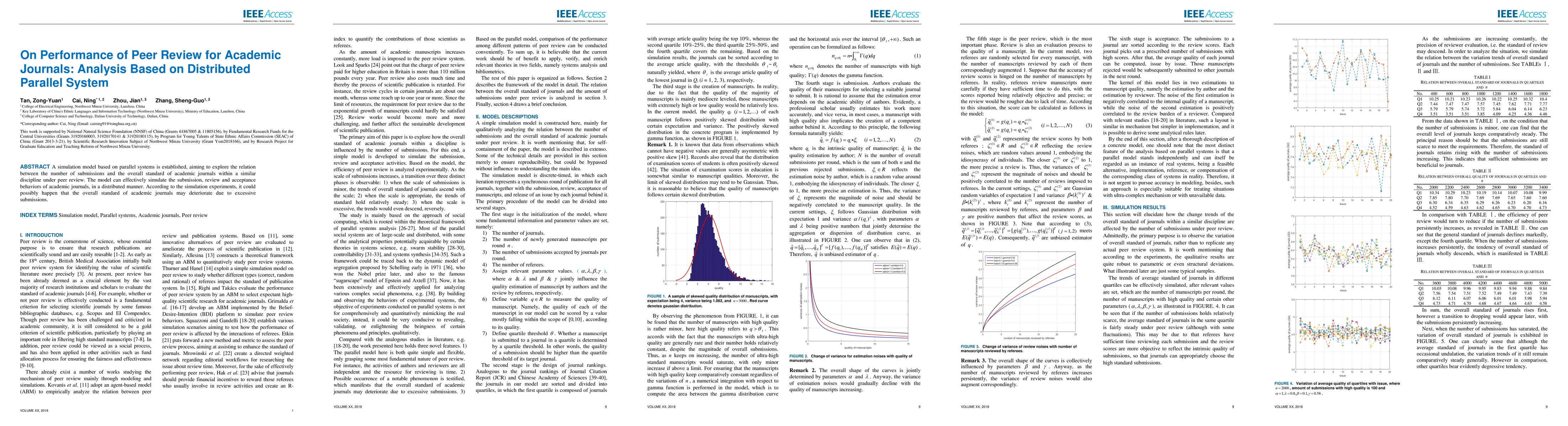 Summary: This paper uses a simulation model based on distributed parallel systems to analyze the relationship between submission volume and journal quality in peer-reviewed academic journals. The findings suggest that excessive submissions may lead to a decline in overall journal standards.
