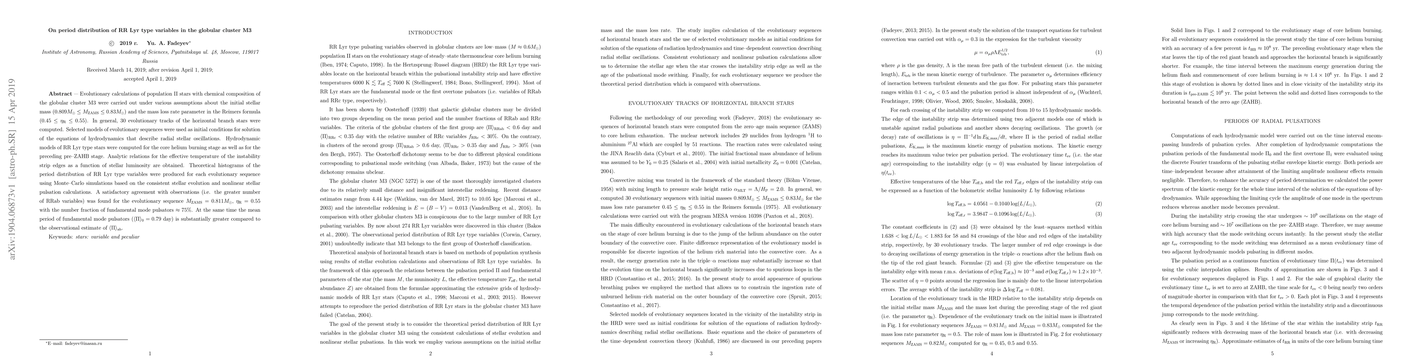 This research investigates the period distribution of RR Lyr type variables in the globular cluster M3 through evolutionary models and hydrodynamic simulations of population II stars. The study finds a good match between theoretical and observational data for a specific evolutionary sequence, though the mean period of fundamental mode pulsators is notably higher than observed values.