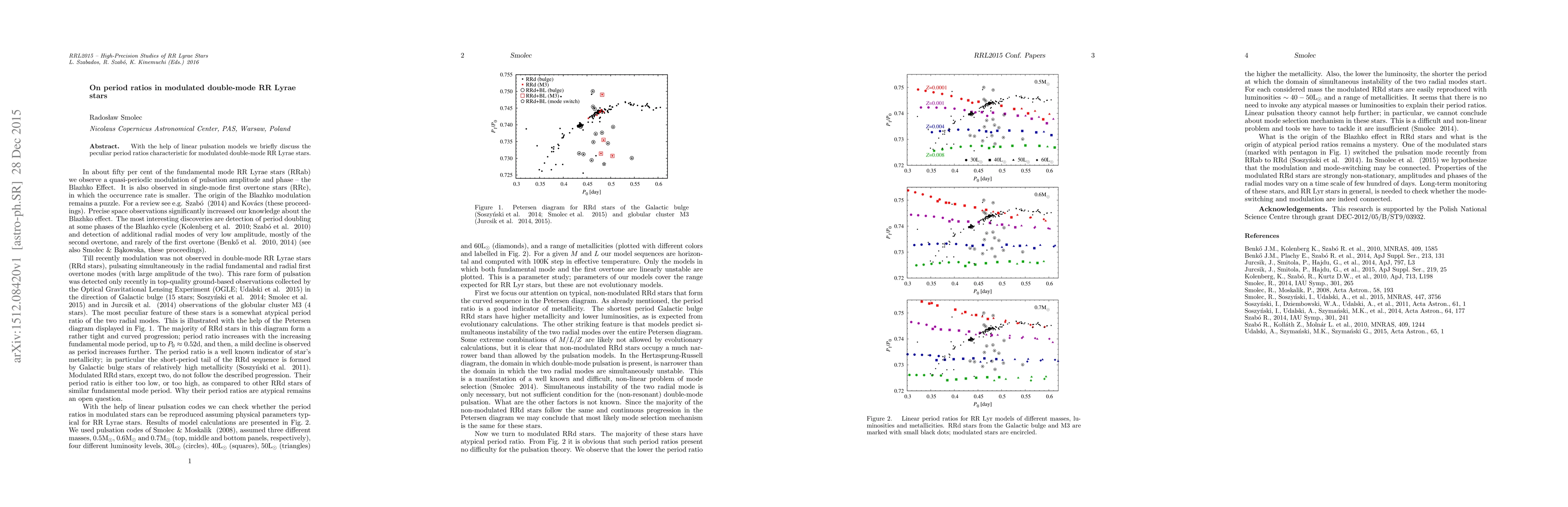 With the help of linear pulsation models we briefly discuss the peculiar period ratios characteristic for modulated double-mode RR Lyrae stars.