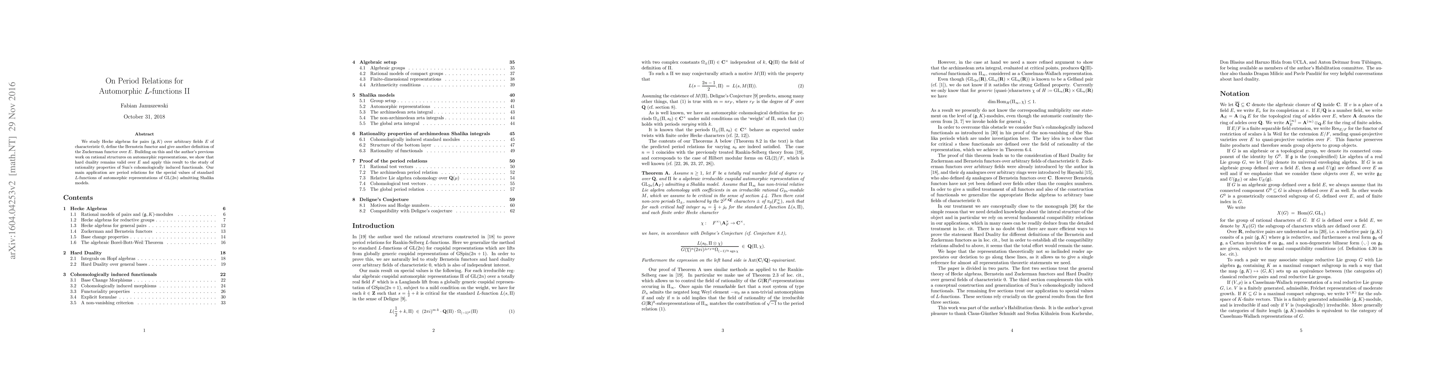 This paper explores Hecke algebras for pairs $({\mathfrak g},K)$ over fields of characteristic $0$, redefines the Bernstein and Zuckerman functors, and demonstrates the validity of hard duality over these fields. It applies this to establish period relations for $L$-functions of automorphic representations of $\mathrm{GL}(2n)$ with Shalika models.