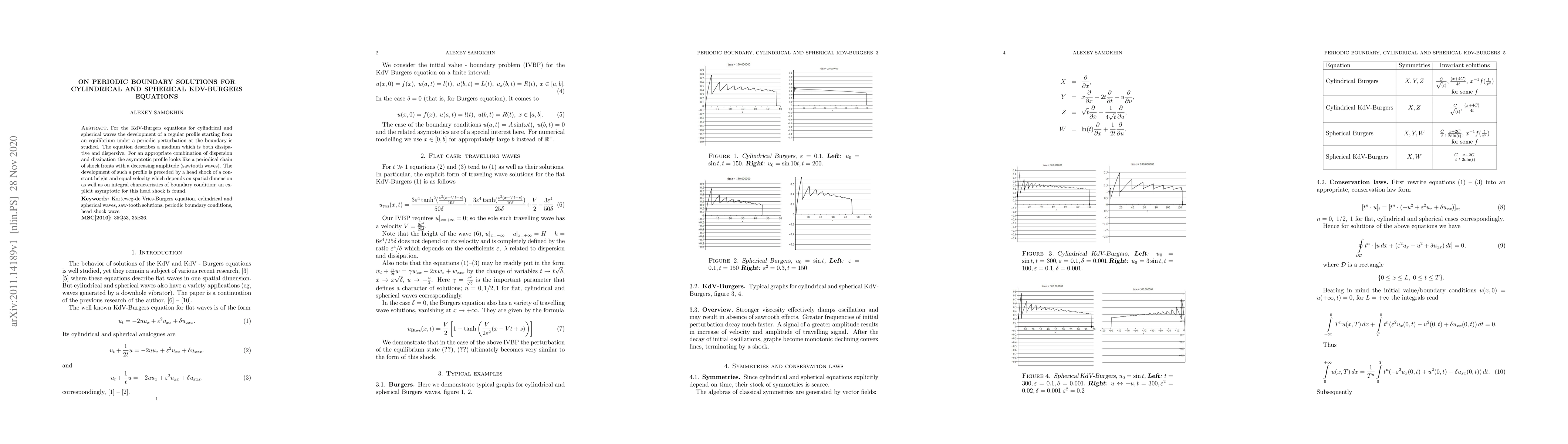 This paper investigates the periodic boundary solutions for cylindrical and spherical KdV-Burgers equations, revealing that a regular profile emerges from equilibrium under periodic boundary perturbations. The asymptotic profile consists of a periodic chain of shock fronts, preceded by a head shock whose height and velocity depend on spatial dimensions and boundary conditions.