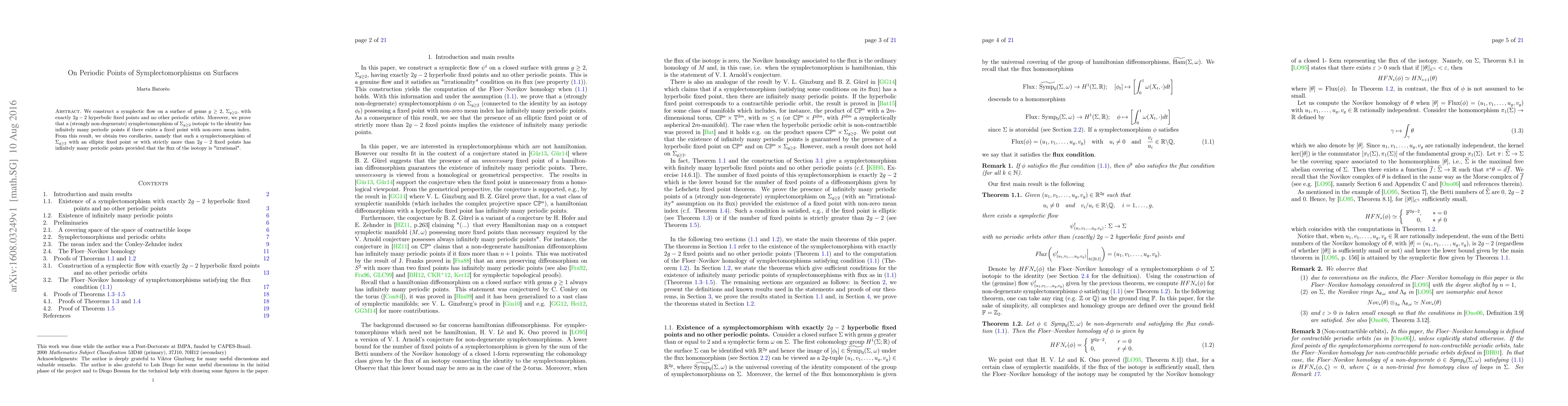 This paper constructs a symplectic flow on a surface of genus g > 1 with precisely 2g-2 hyperbolic fixed points and proves that a strongly non-degenerate symplectomorphism isotopic to the identity has infinitely many periodic points if it contains a fixed point with non-zero mean index.