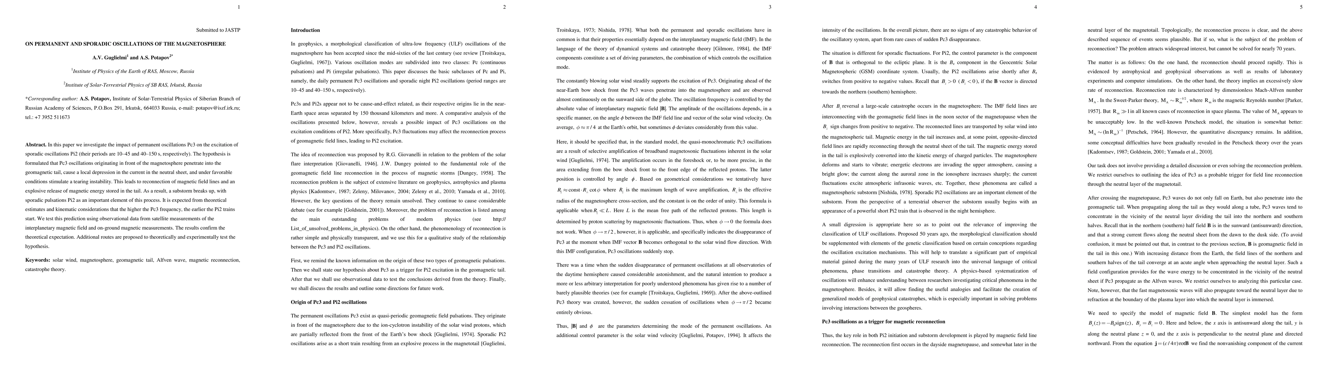 The paper investigates how permanent Pc3 oscillations stimulate sporadic Pi2 oscillations in the magnetosphere, leading to substorms and explosive releases of magnetic energy.