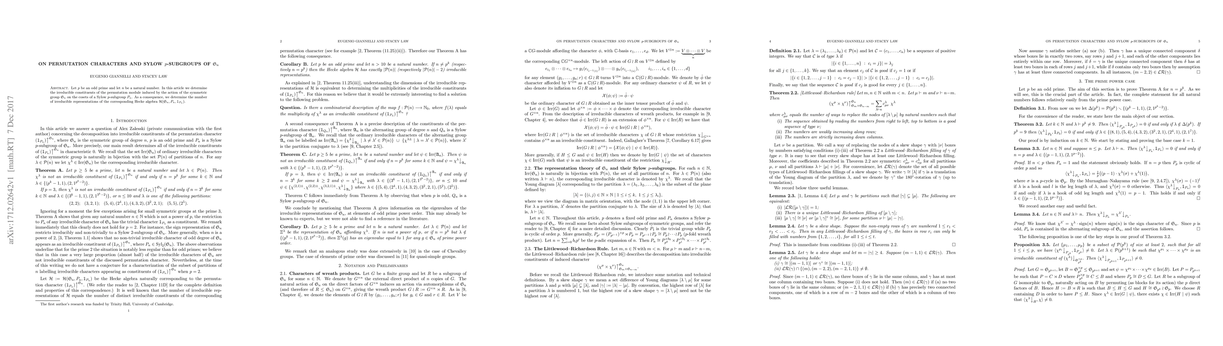 Let $p$ be an odd prime and let $n$ be a natural number. In this article we determine the irreducible constituents of the permutation module induced by the action of the symmetric group $\mathfrak{S}_n$ on the cosets of a Sylow $p$-subgroup $P_n$. As a consequence, we determine the number of irreducible representations of the corresponding Hecke algebra $\mathcal{H}(\mathfrak{S}_n, P_n, 1_{P_n})$.