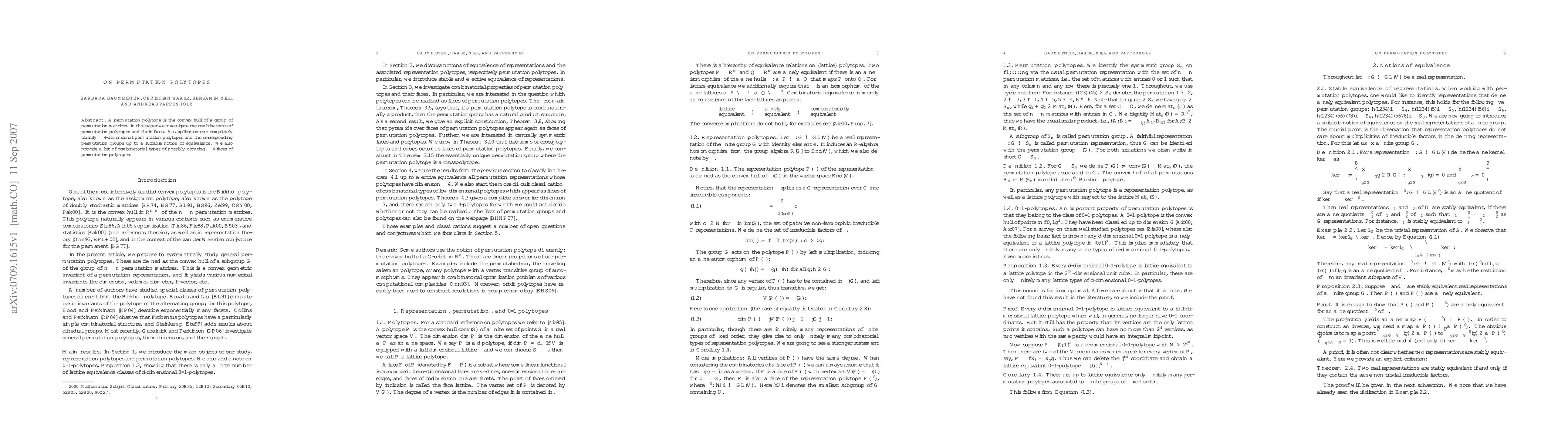 This paper explores the combinatorics of permutation polytopes, classifying them in dimensions 2 to 4 and identifying their possible face types up to dimension four, providing a comprehensive understanding of their structure and associated permutation groups.
