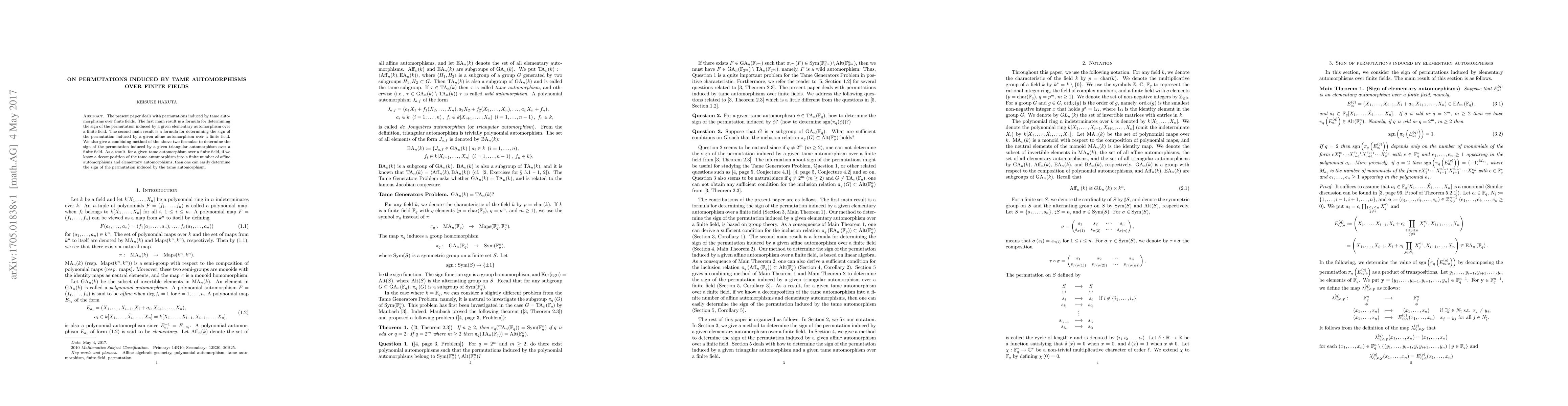 This paper provides formulas for determining the sign of permutations induced by tame automorphisms over finite fields, including elementary, affine, and triangular automorphisms. It offers a method to decompose and compute the sign of permutations for any tame automorphism by combining the results for elementary and affine automorphisms.