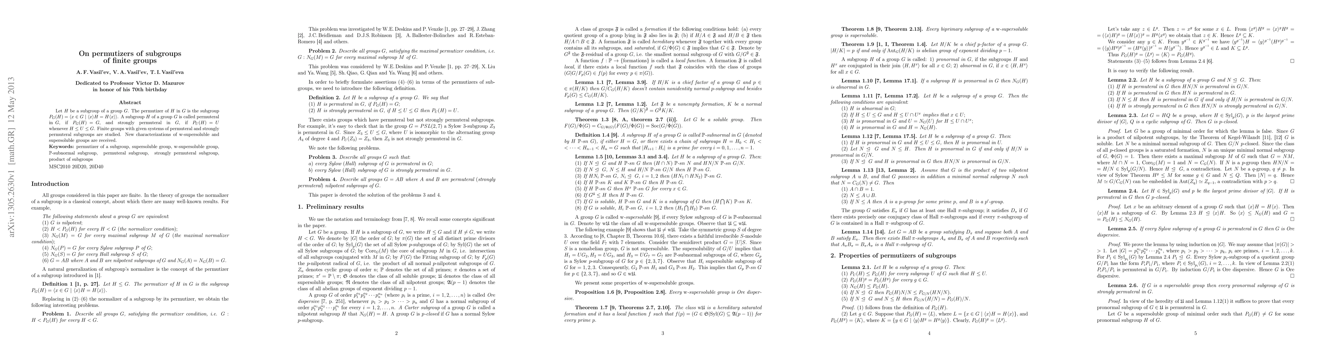 Finite groups with given systems of permuteral and strongly permuteral subgroups are studied. New characterizations of w-supersoluble and supersoluble groups are received.