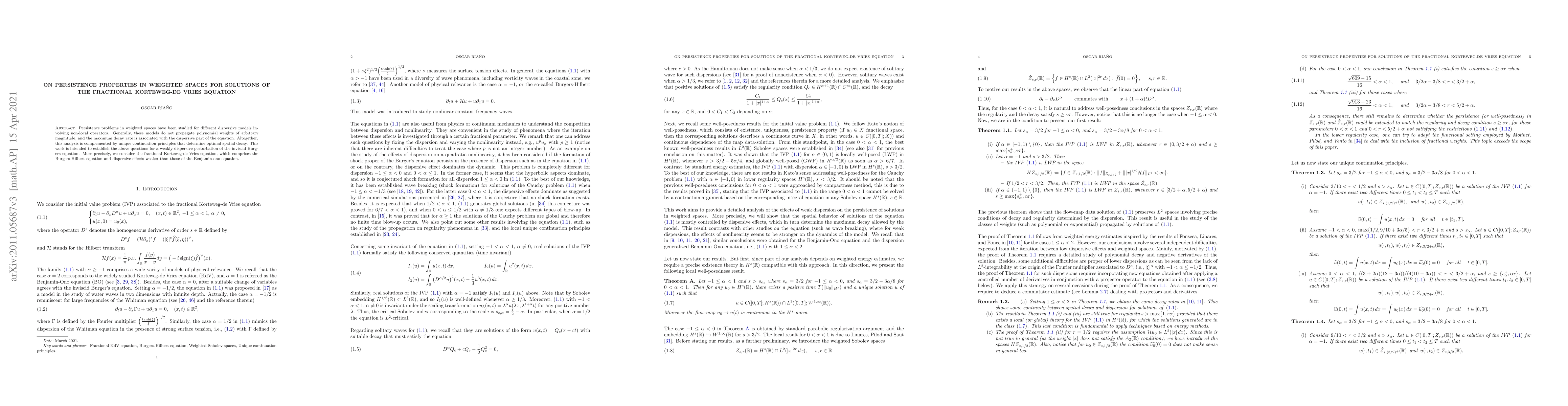 Persistence problems in weighted spaces have been studied for different dispersive models involving non-local operators. Generally, these models do not propagate polynomial weights of arbitrary magnitude, and the maximum decay rate is associated with the dispersive part of the equation. Altogether, this analysis is complemented by unique continuation principles that determine optimal spatial decay. This work is intended to establish the above questions for a weakly dispersive perturbation of the inviscid Burgers equation. More precisely, we consider the fractional Korteweg-de Vries equation, which comprises the Burgers-Hilbert equation and dispersive effects weaker than those of the Benjamin-ono equation.